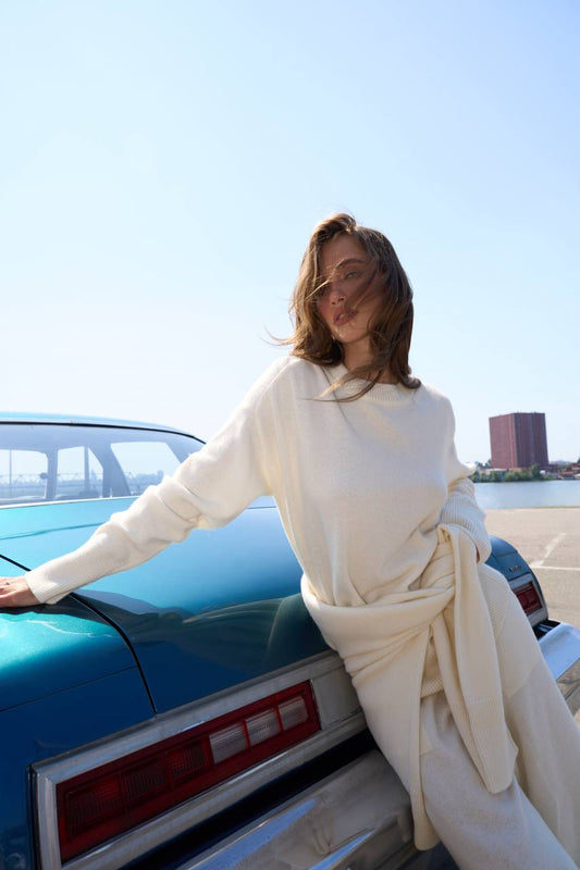 Lambswool sweater and pants set, milky