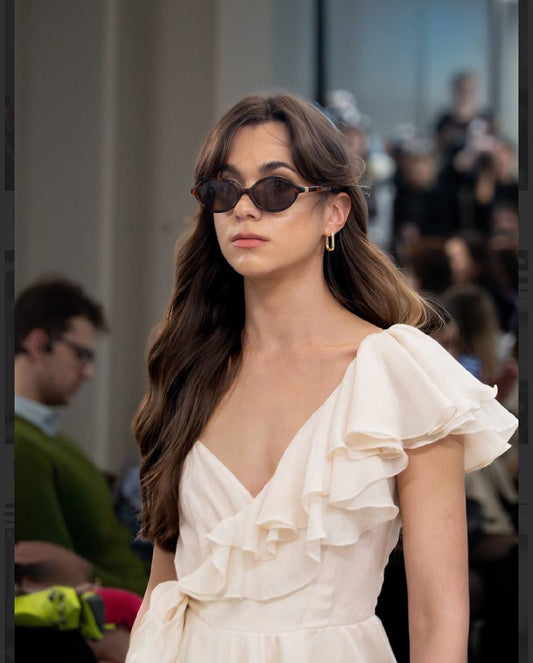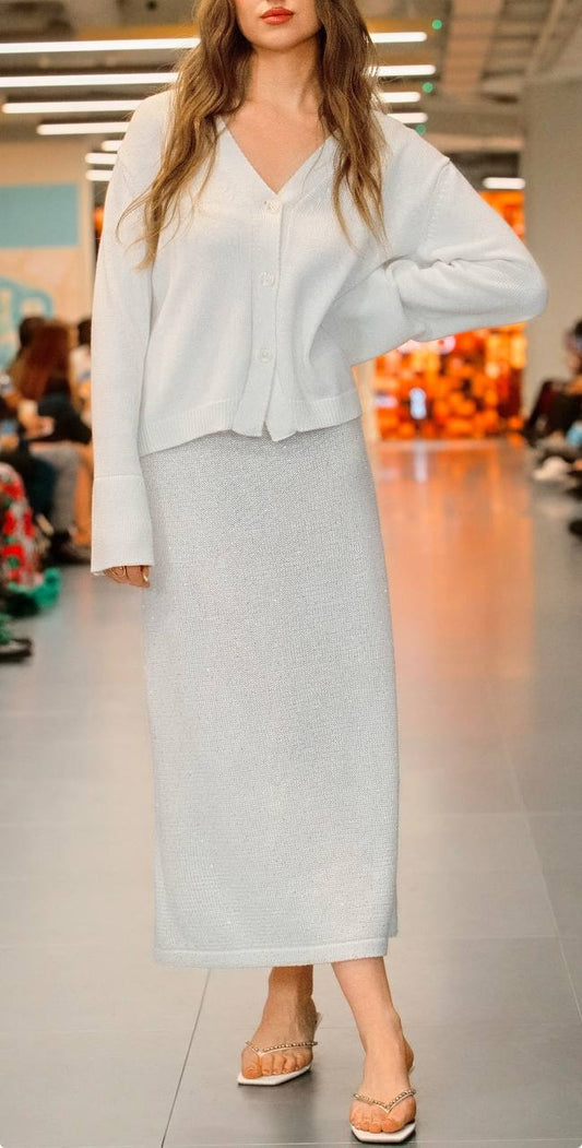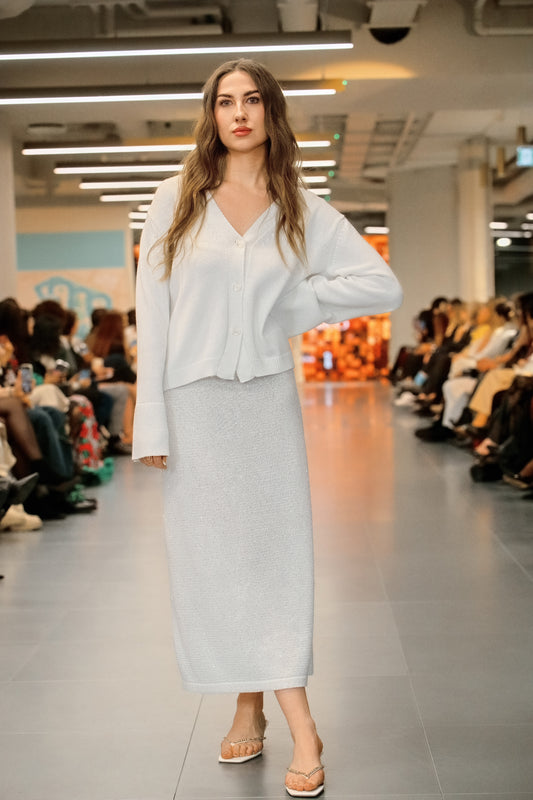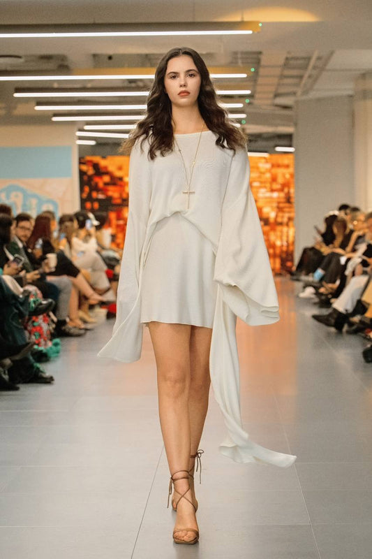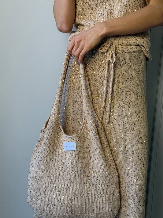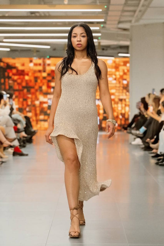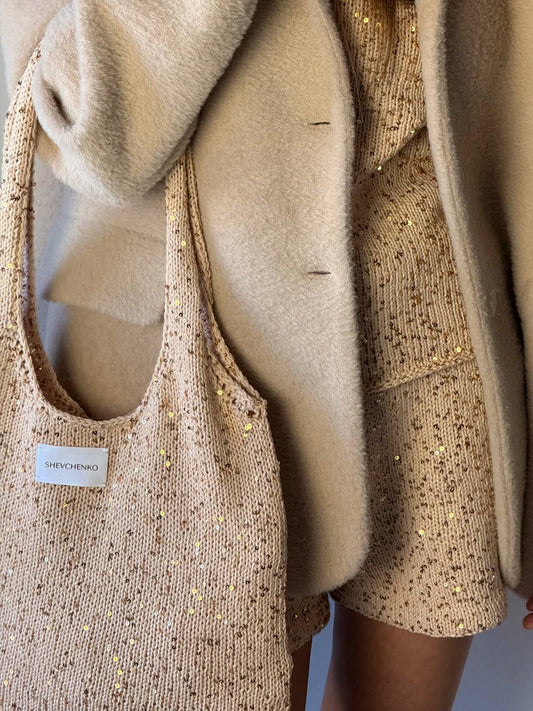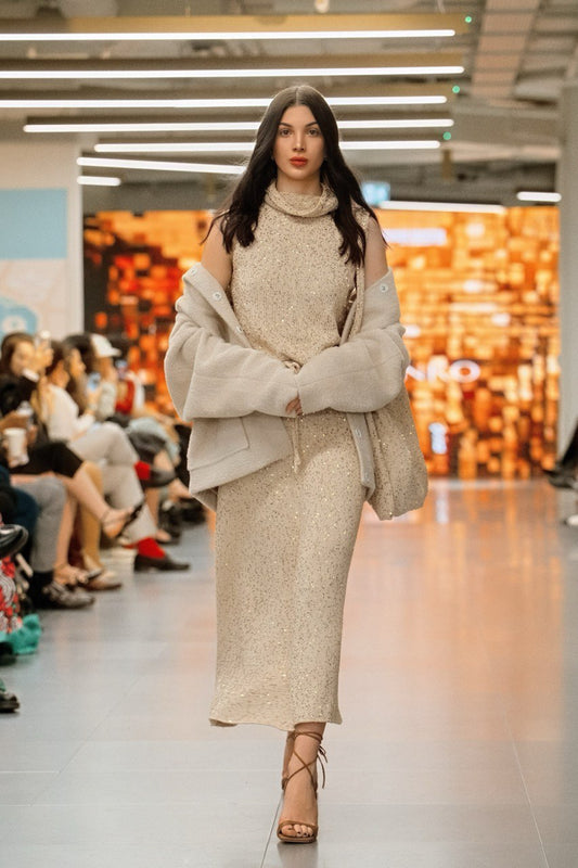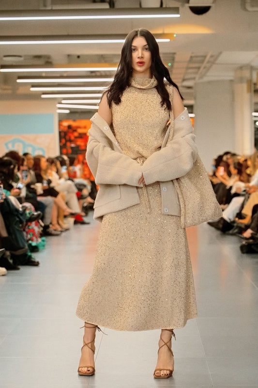 Вʼязана сукня ручної роботи з обʼємним воланом, бежевий