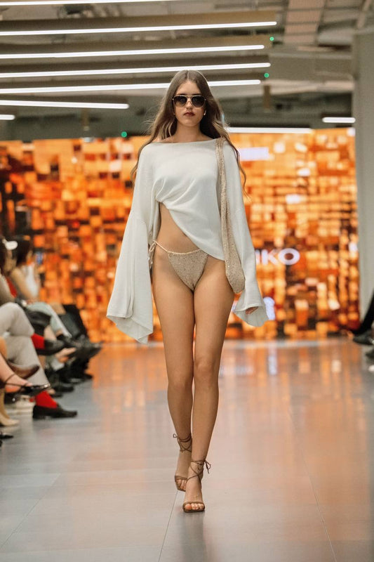 Вʼязаний топ ручної роботи з горловиною, бежевий