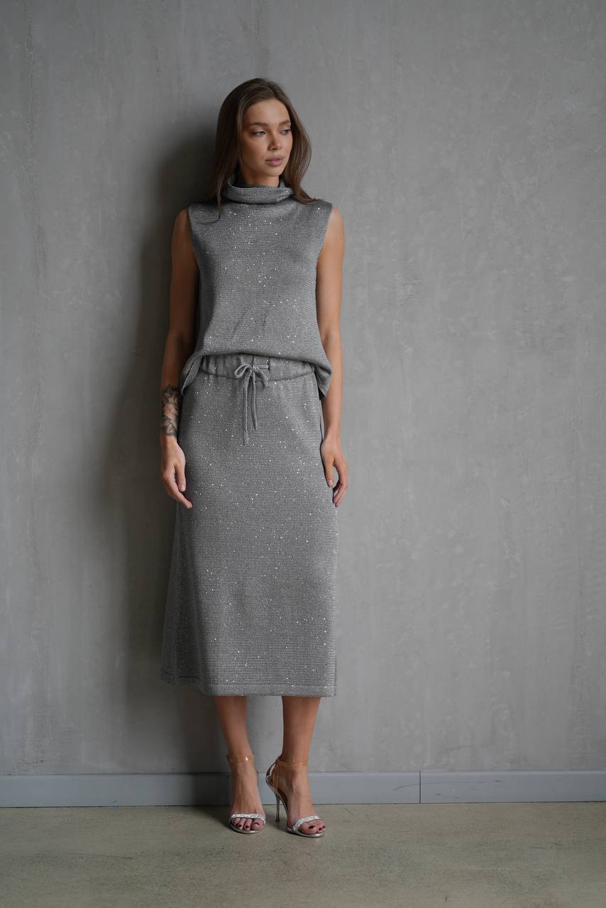 Вʼязана спідниця міді в дрібну паєтку, сіра