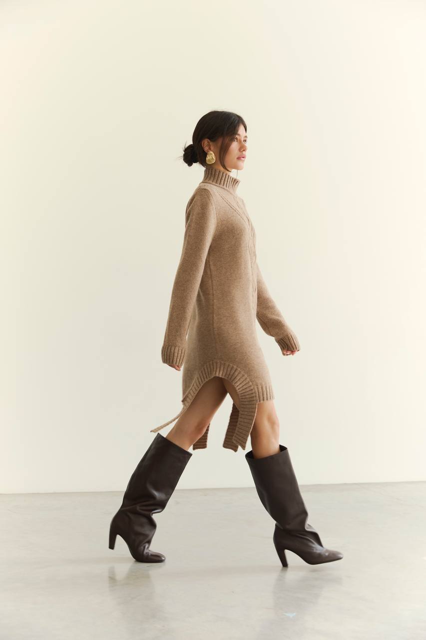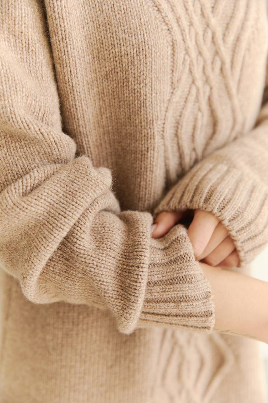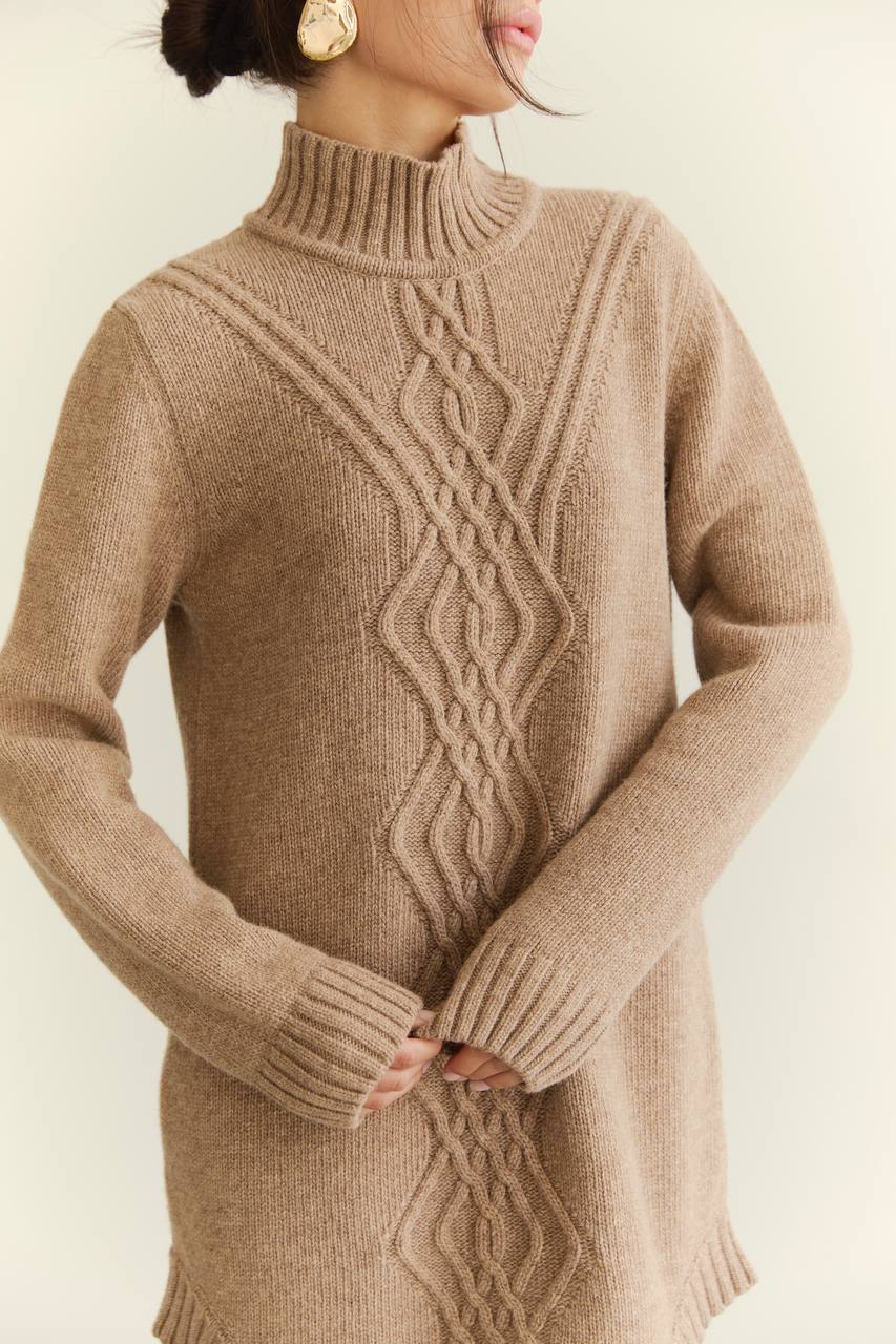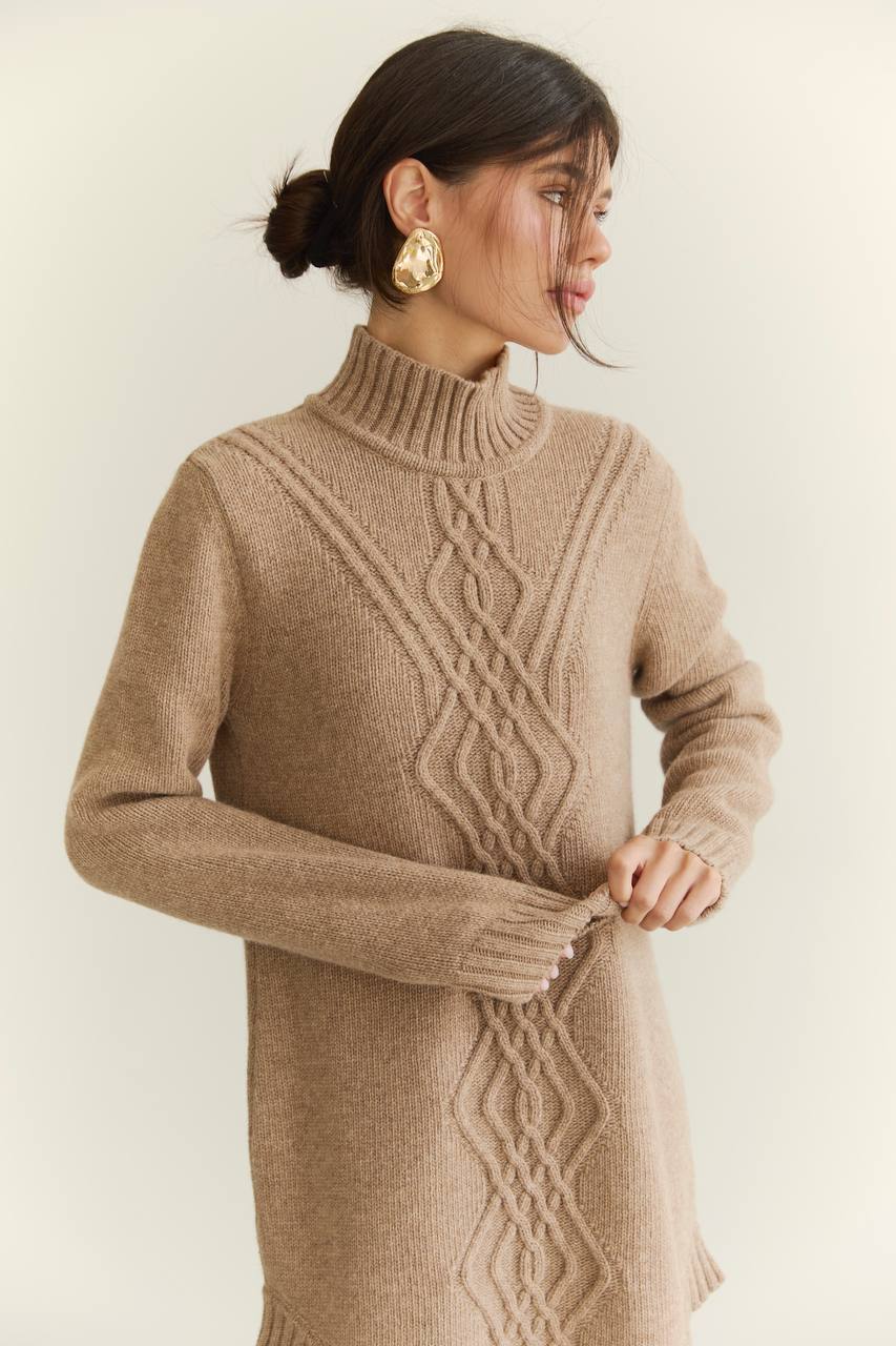 Прямий крій та об’ємні плетіння створюють стильний мінімалістичний силует, який легко комбінується з чоботами або базовими аксесуарами. Тактильна ніжність вовни дарує тепло і комфорт, а універсальний дизайн робить сукню ідеальним вибором для будь-якого осінньо-зимового образу