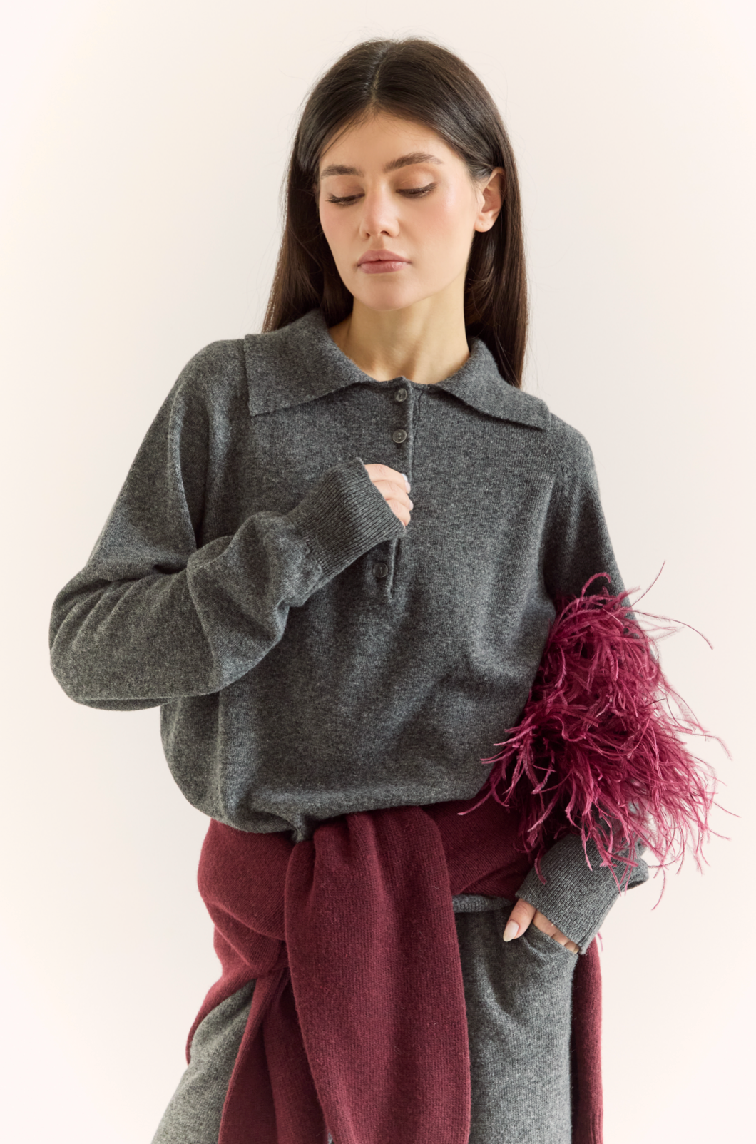 Ніжний на дотик, благородний на вигляд — це поло поєднує унікальну м’якість вовни ягняти, віскози та поліаміду для комфорту, тепла й довговічності. Універсальний відтінок легко вписується в будь-який образ — від casual до refined. Ідеальний вибір для тих, хто цінує натуральні матеріали, стиль і якість.