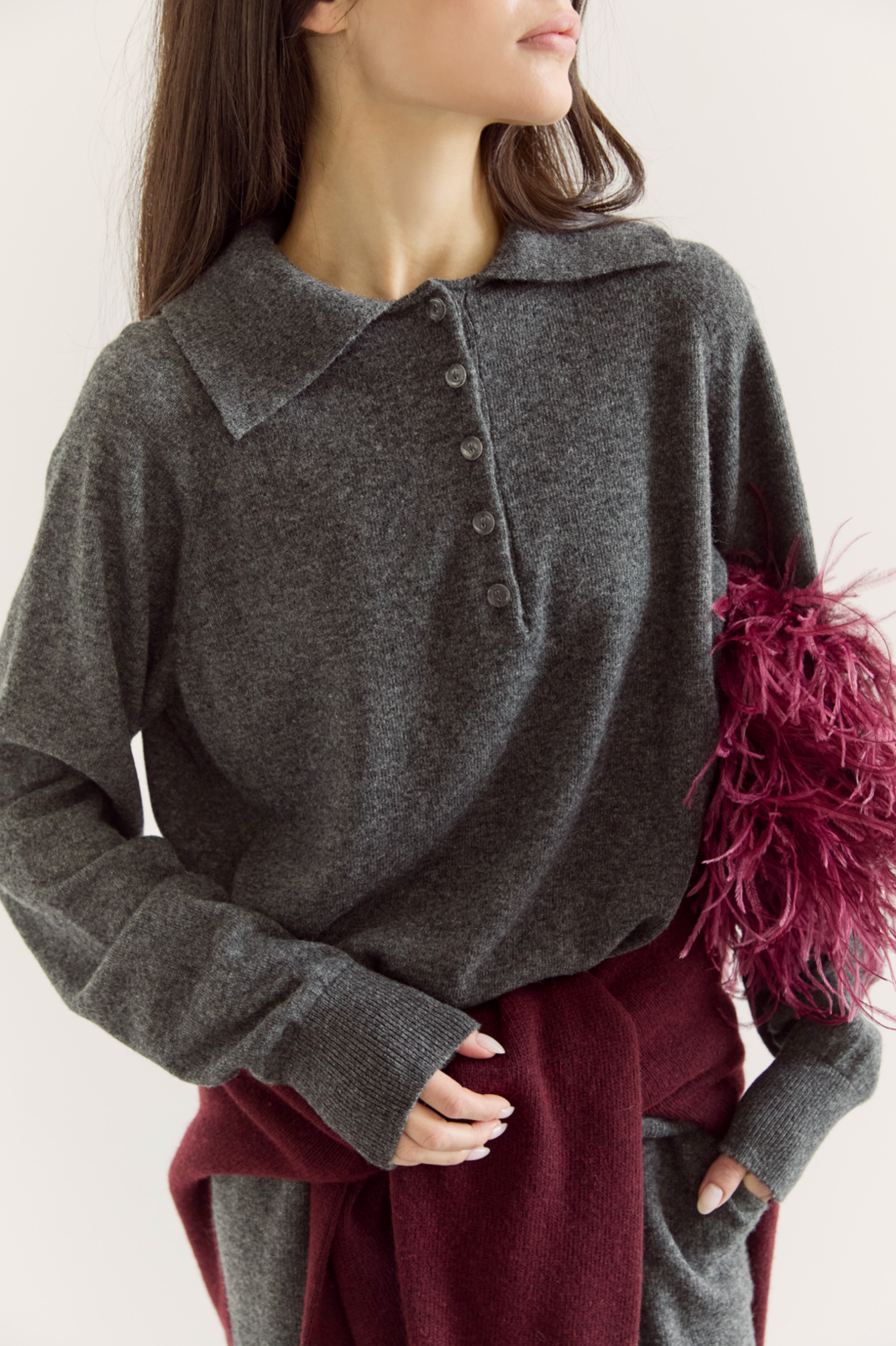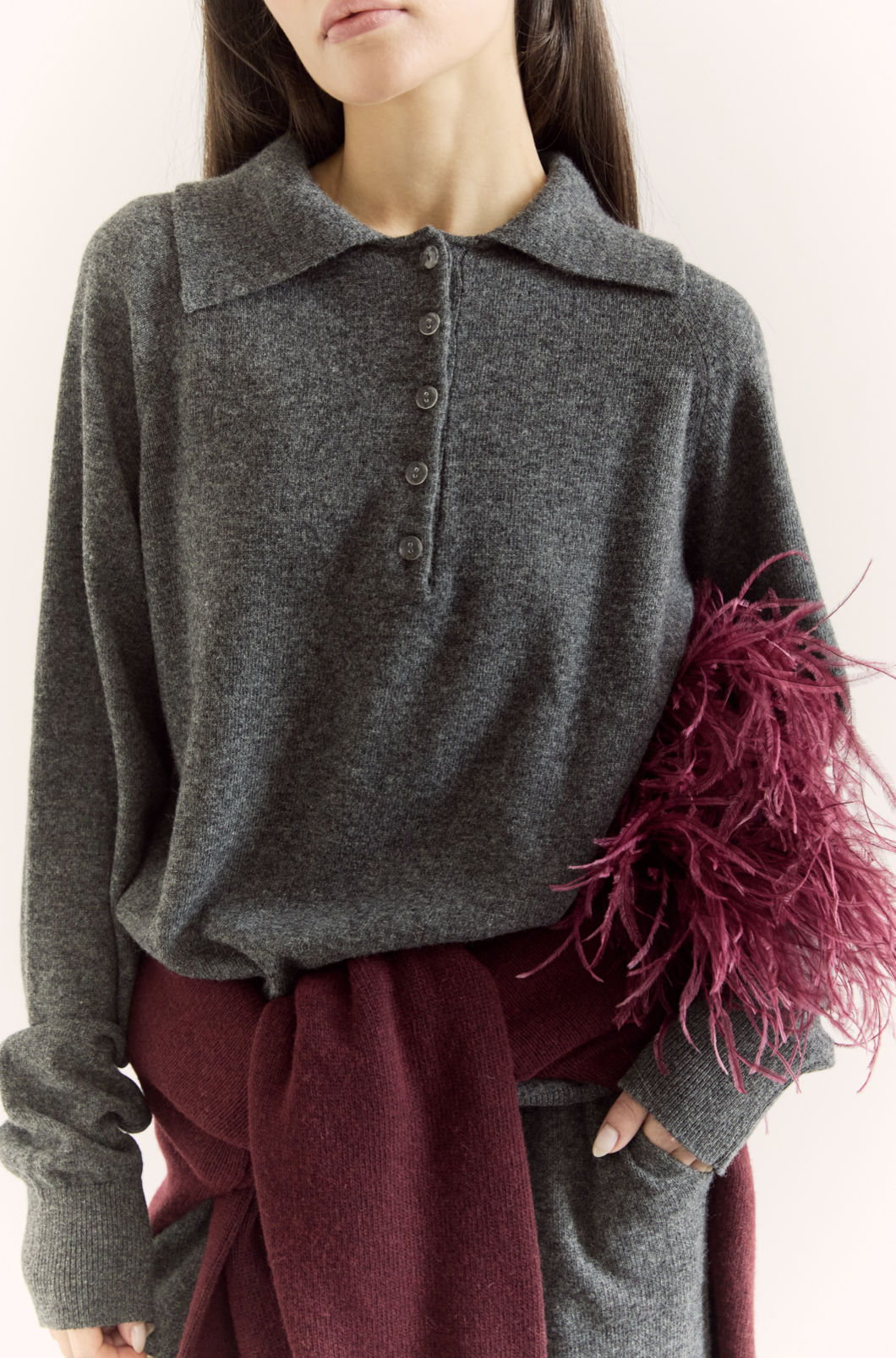 Джемпер поло з вовни ягня, графітовий