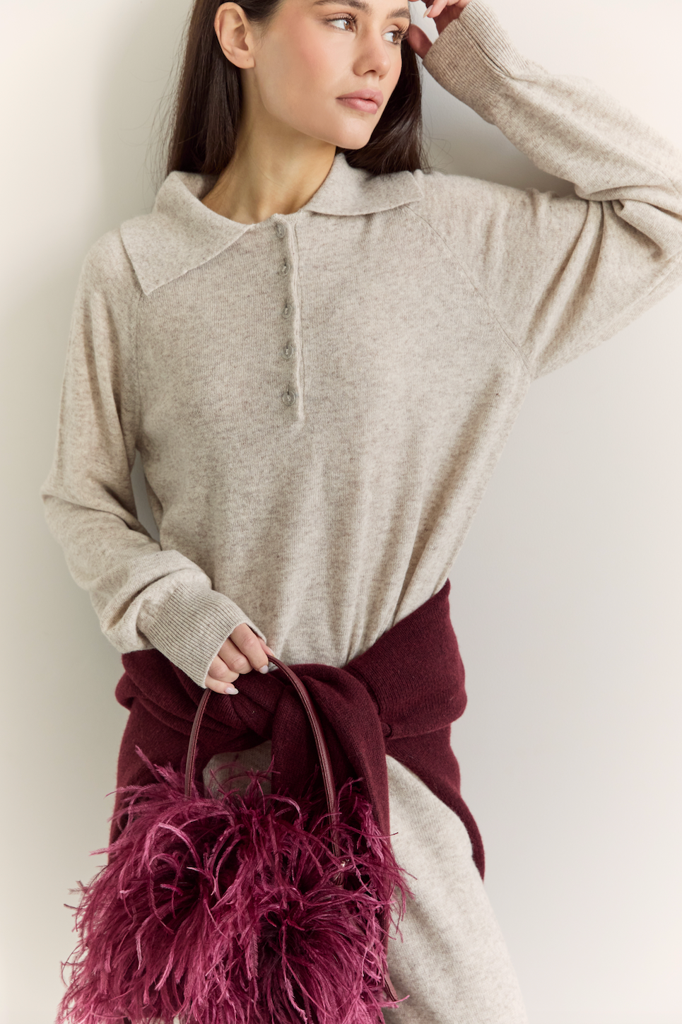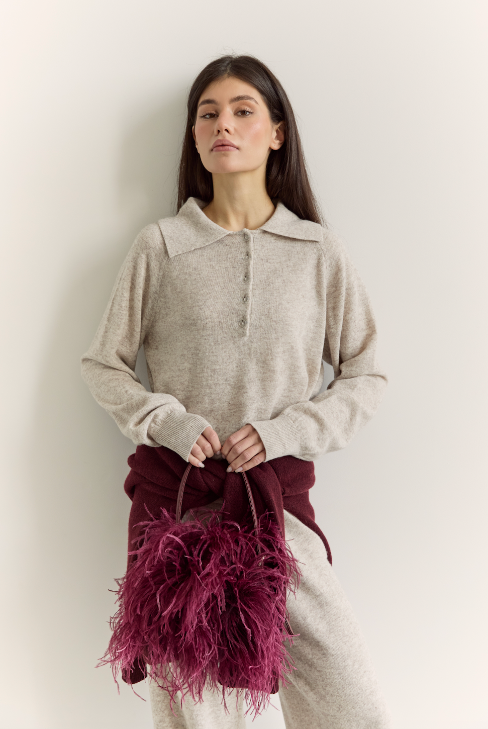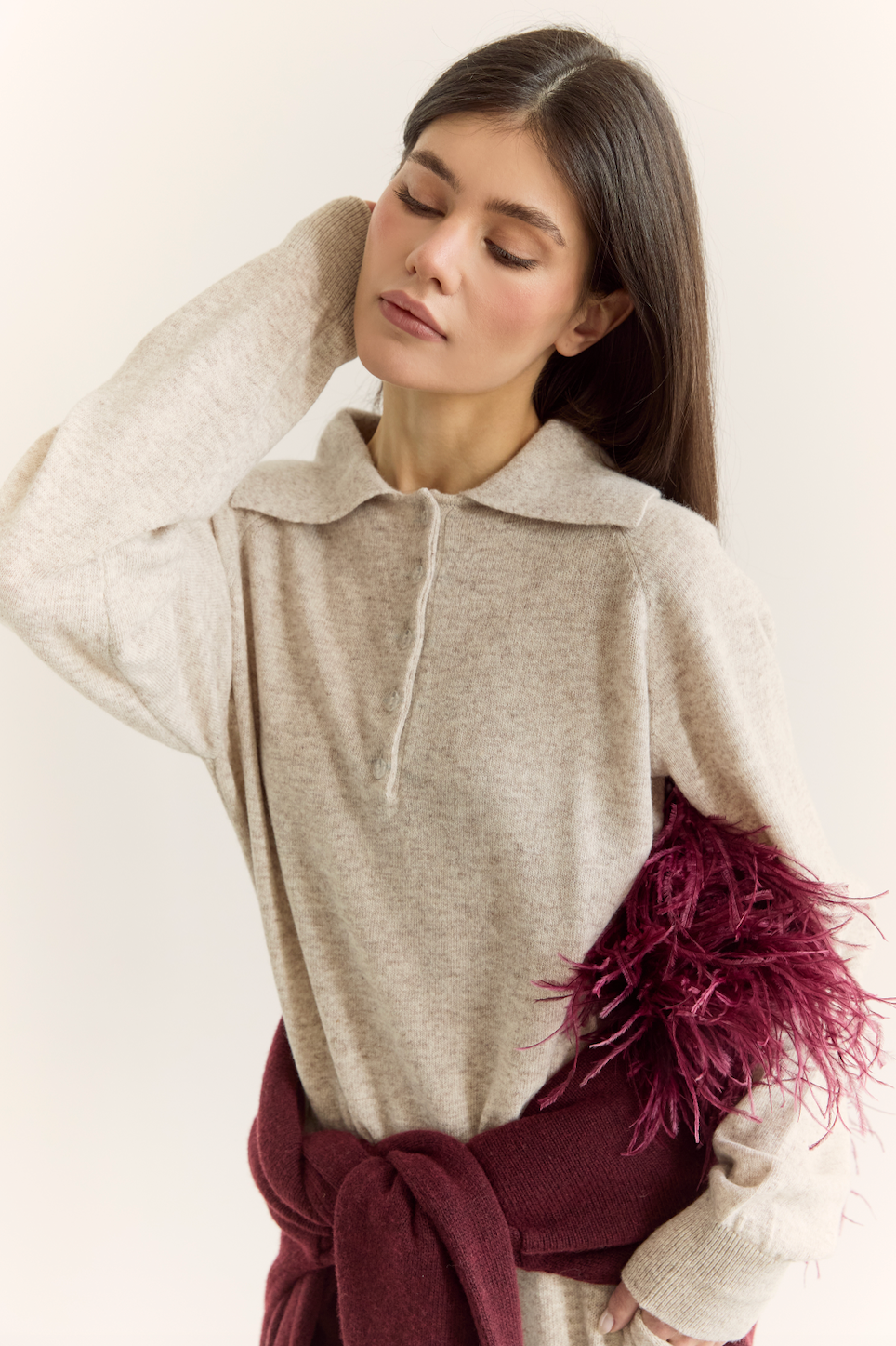 Джемпер поло з вовни ягня, світло-бежевий меланжевий
