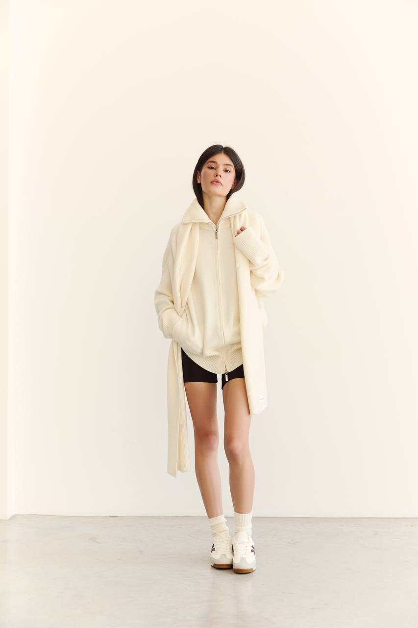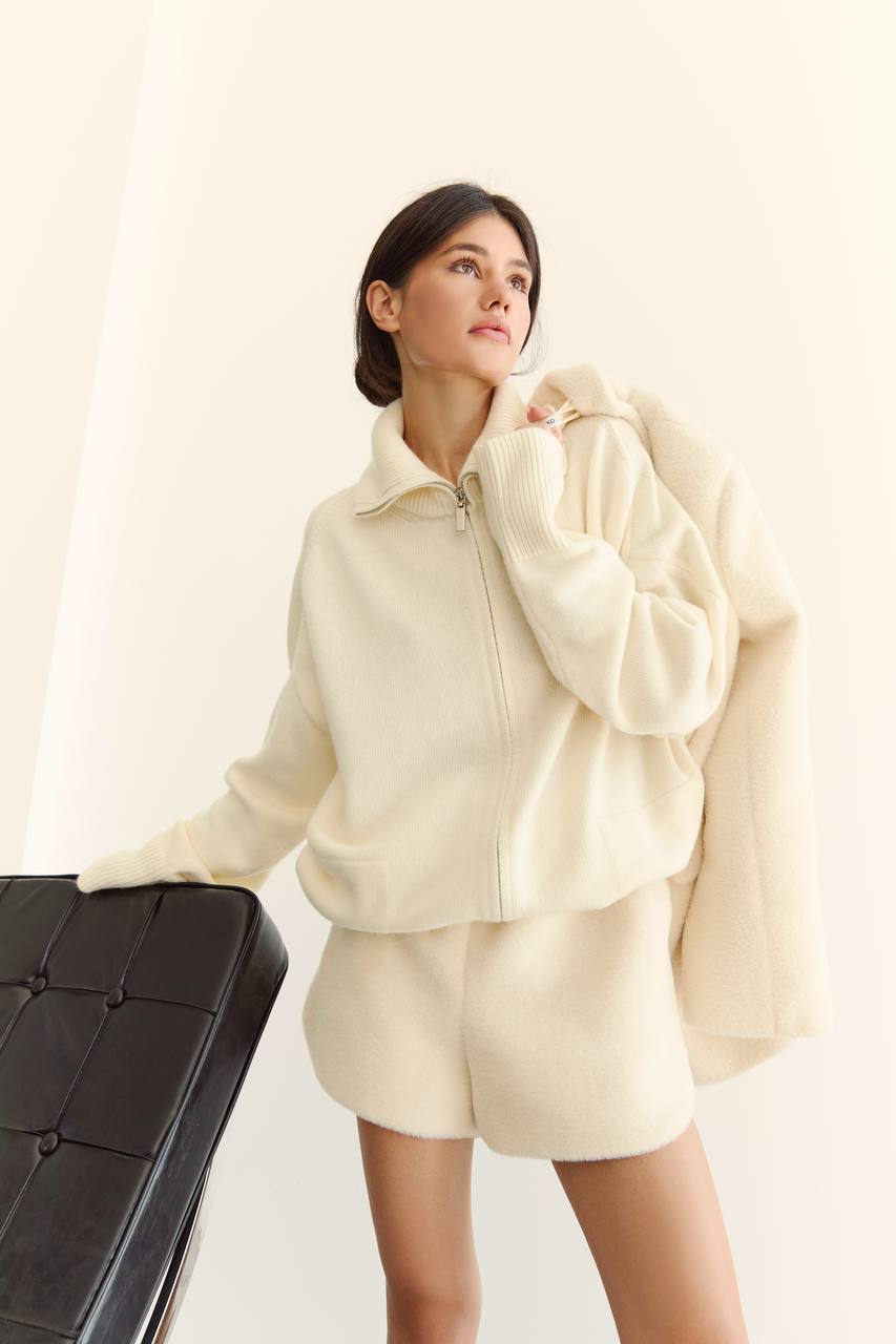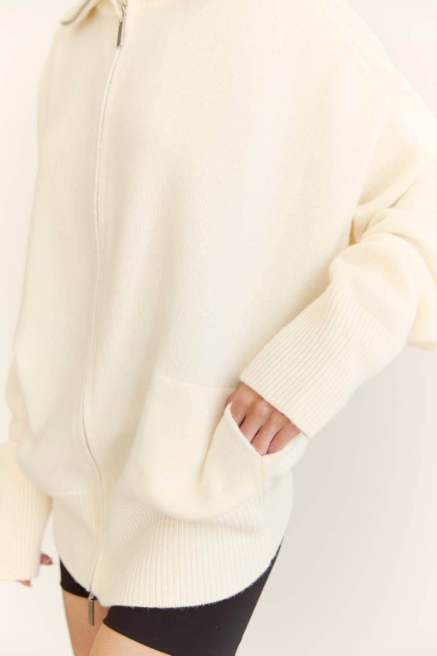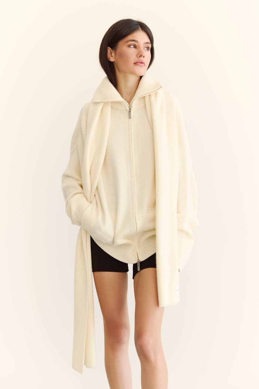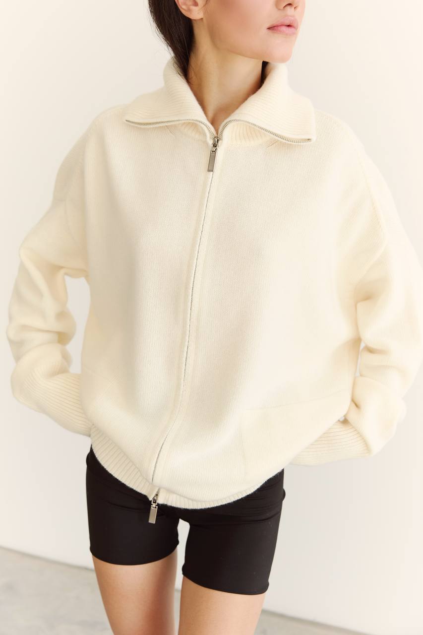 Кардиган з вовни ягня на блискавці, молочний (термін виготовлення 10-12 робочих днів)