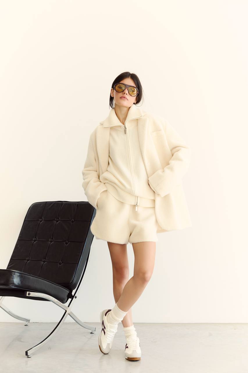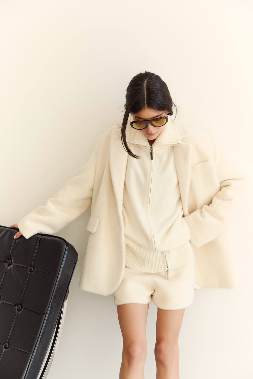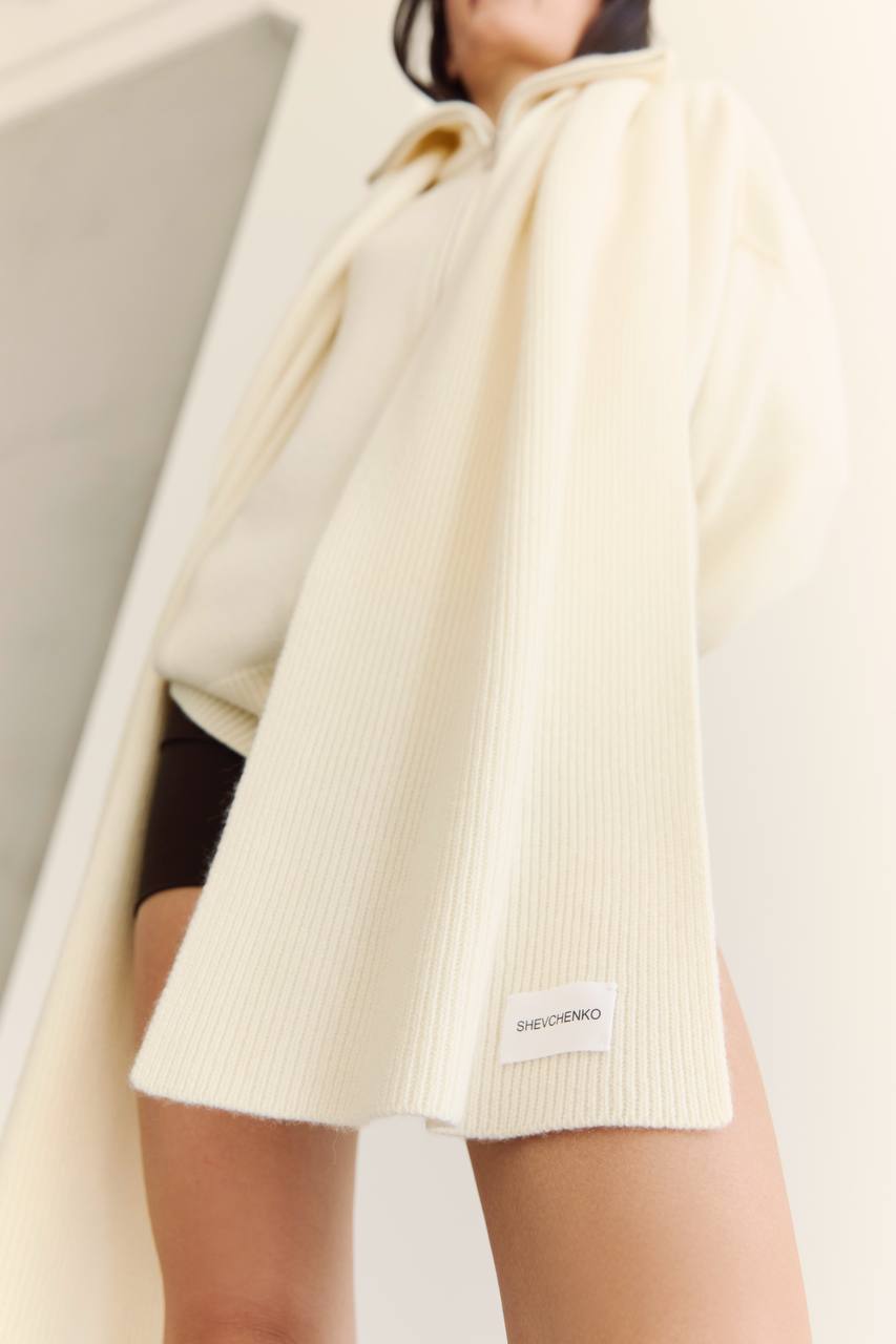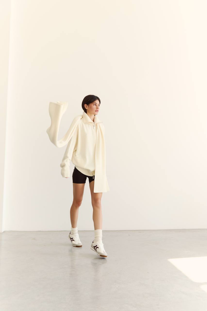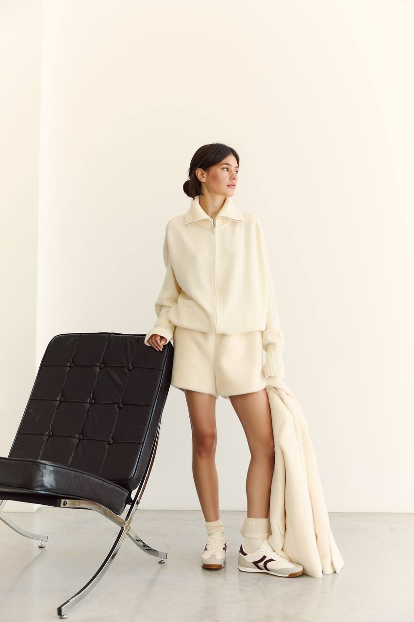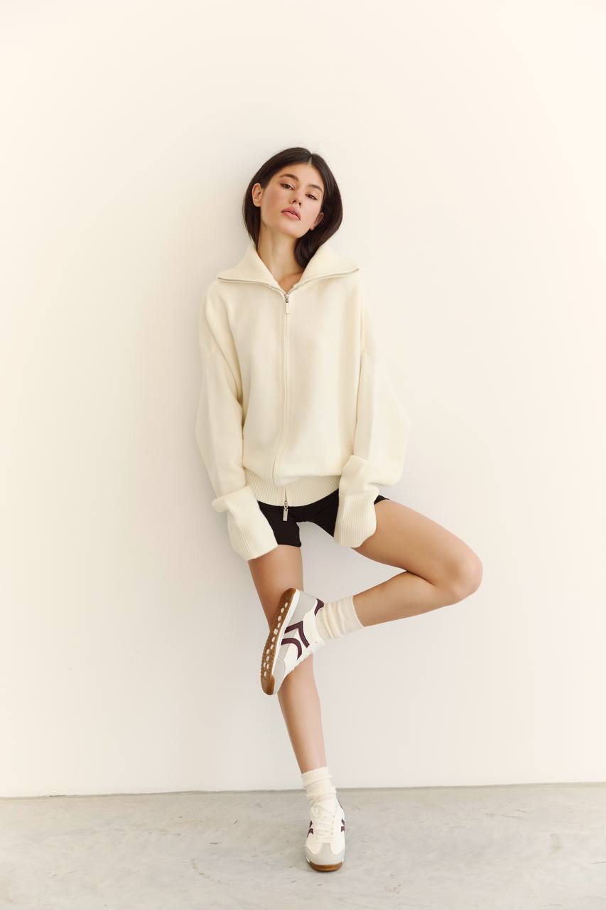Кардиган з вовни ягня на блискавці, молочний (термін виготовлення 10-12 робочих днів)