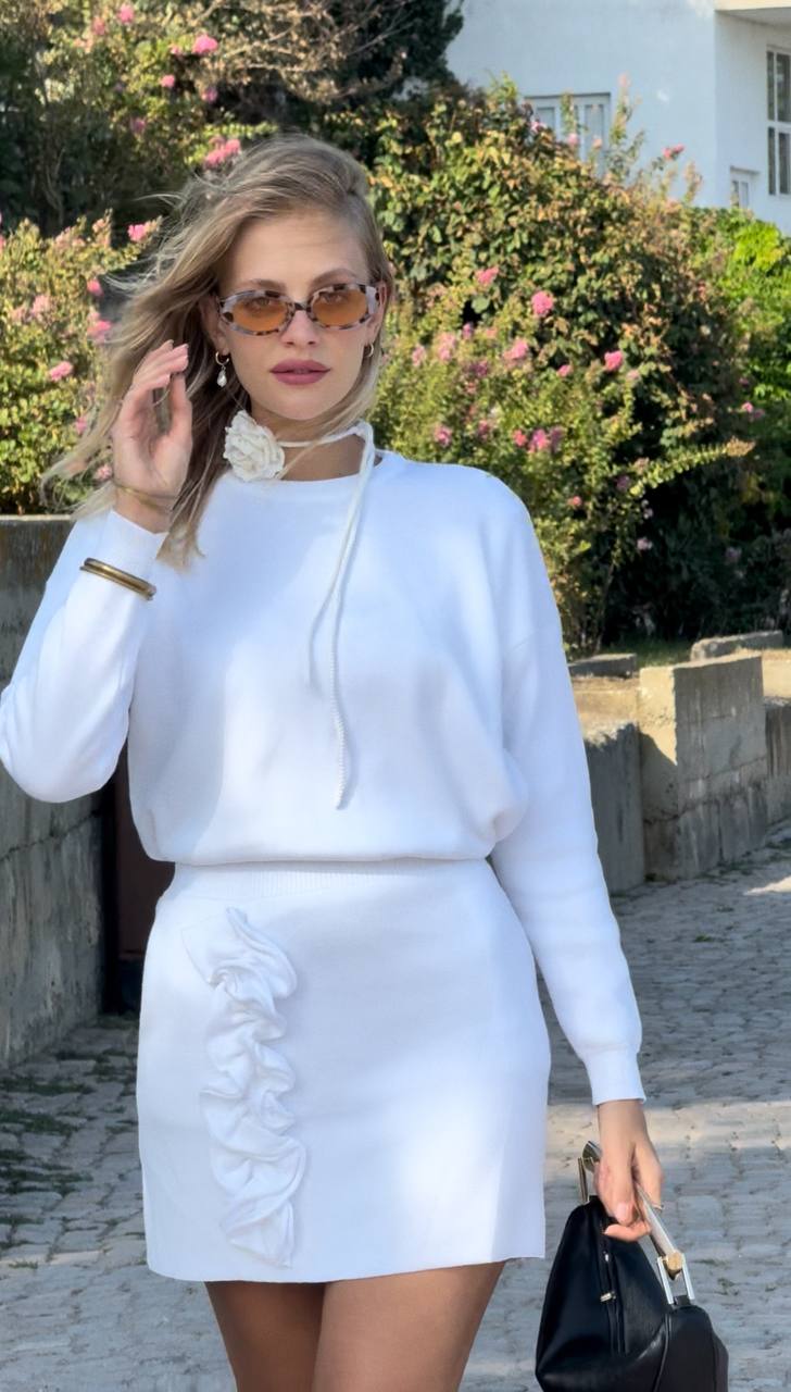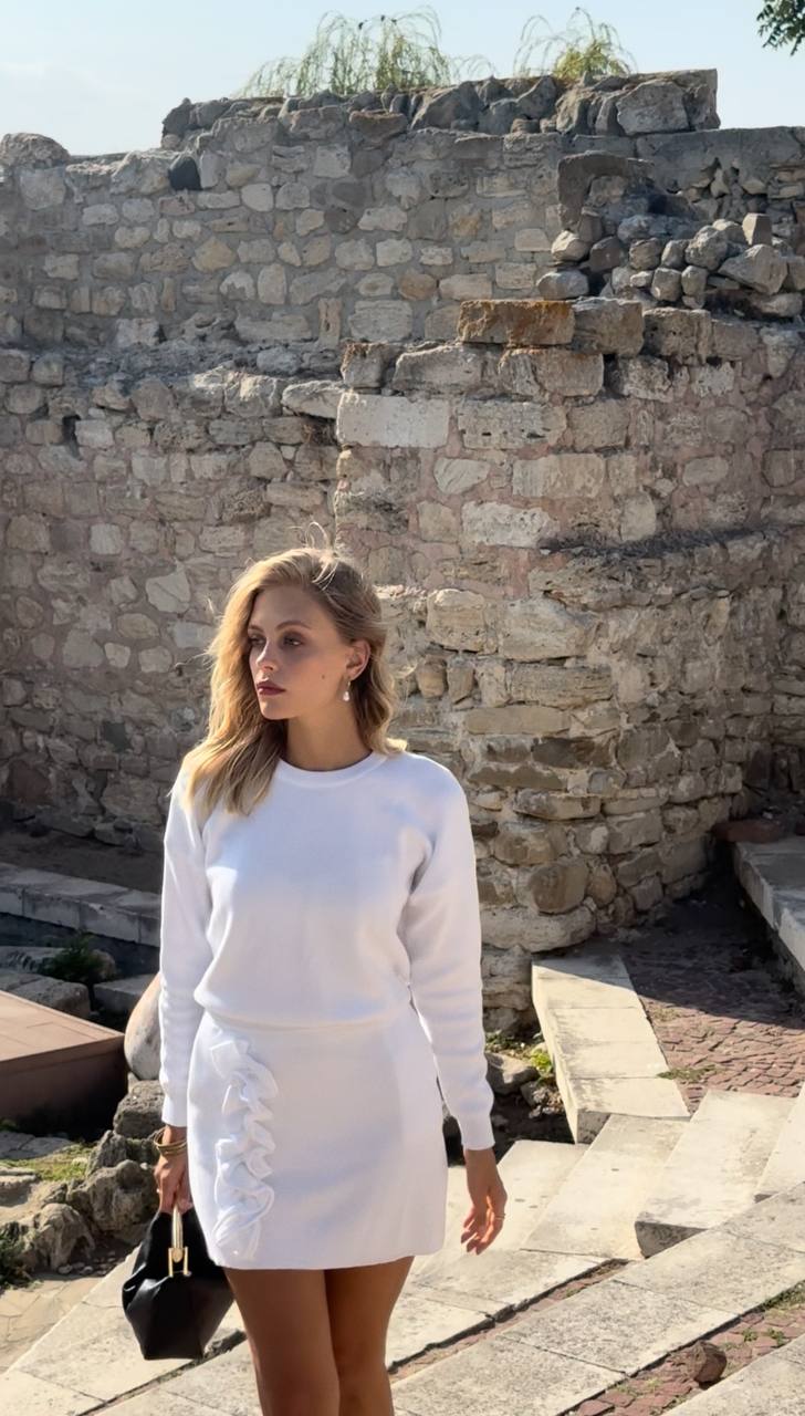 Комплект вʼязаний з джемпером та міні-спідницею, білий