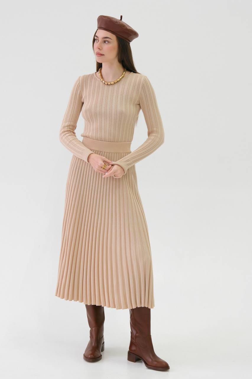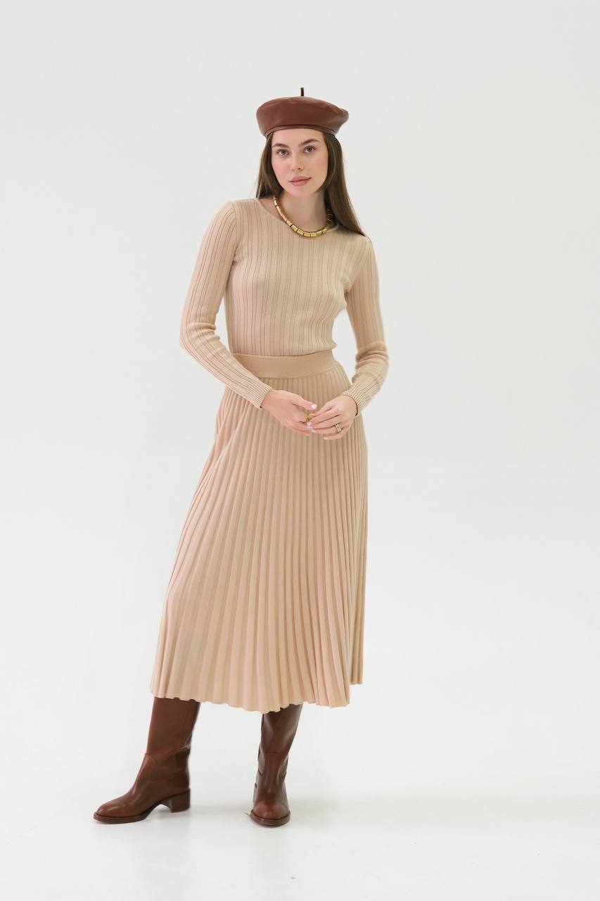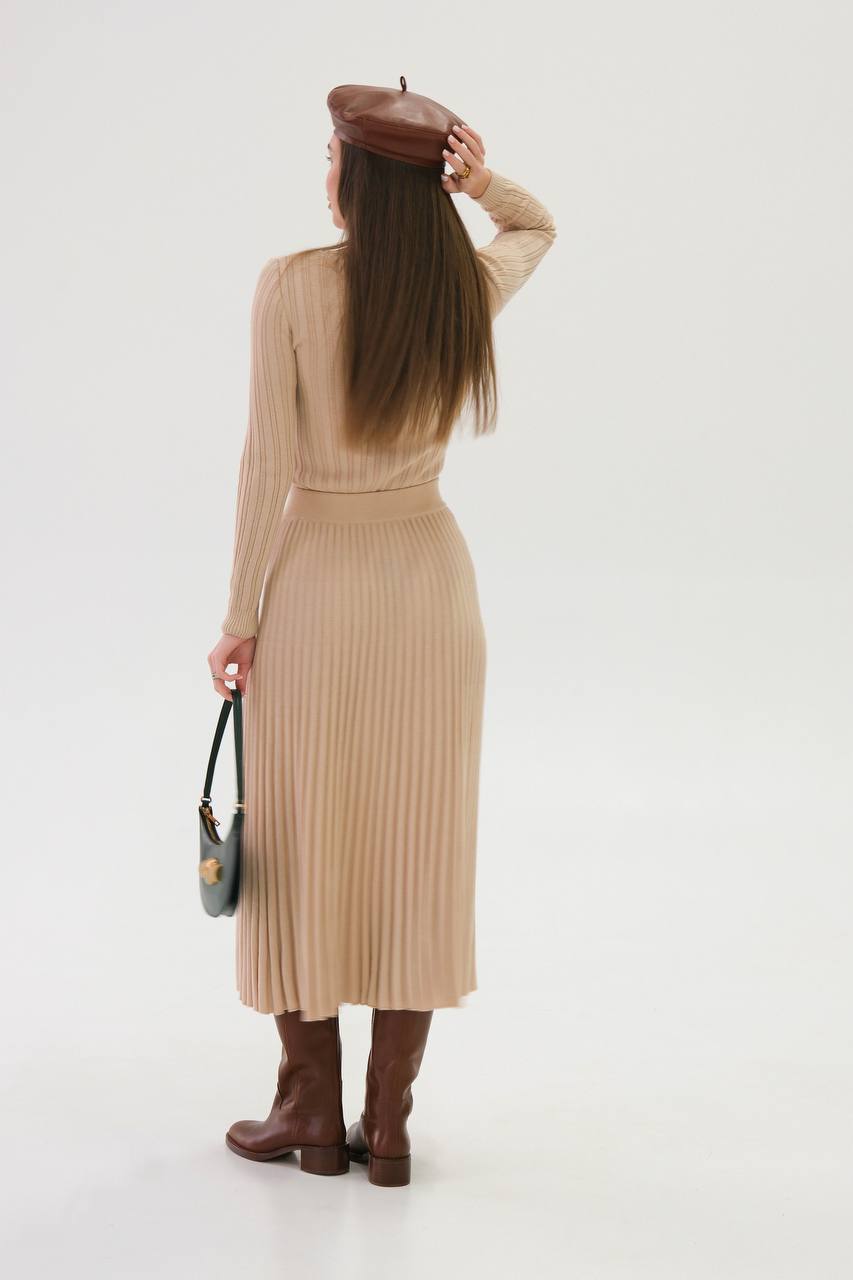 В'язаний комплект плісе від SHEVCHENKO - це елегантний і стильний вибір для сучасної жінки, яка цінує комфорт і вишуканість у своєму гардеробі. Цей комплект ідеально підійде як для офісного стилю, так і для вечірнього виходу або особливої події, надаючи вам бездоганний вигляд і відчуття впевненості. Ви зможете поєднувати його з різними аксесуарами і взуттям, створюючи найрізноманітніші образи, що підкреслять ваш стиль і індивідуальність.