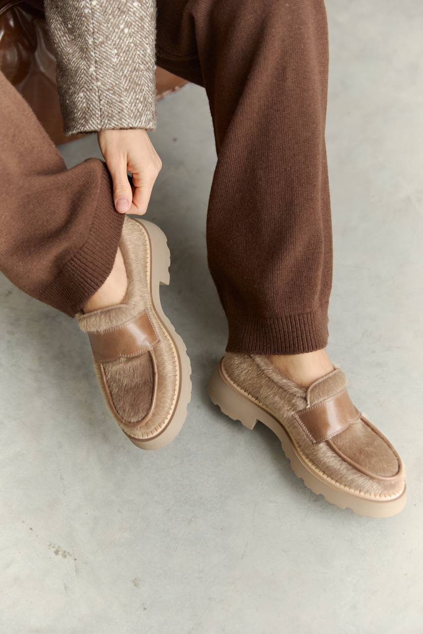 Зручні лофери з екошкіри поні з м’якою фактурою та комфортною посадкою. Зовнішня частина виконана з екошкіри з ефектом поні, що надає взуттю стильного та сучасного вигляду. Внутрішня частина — натуральна шкіра, яка забезпечує комфорт протягом усього дня.