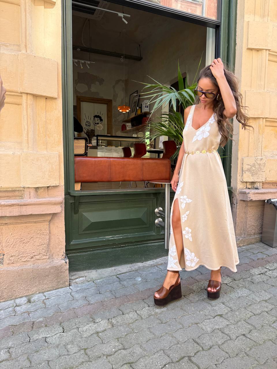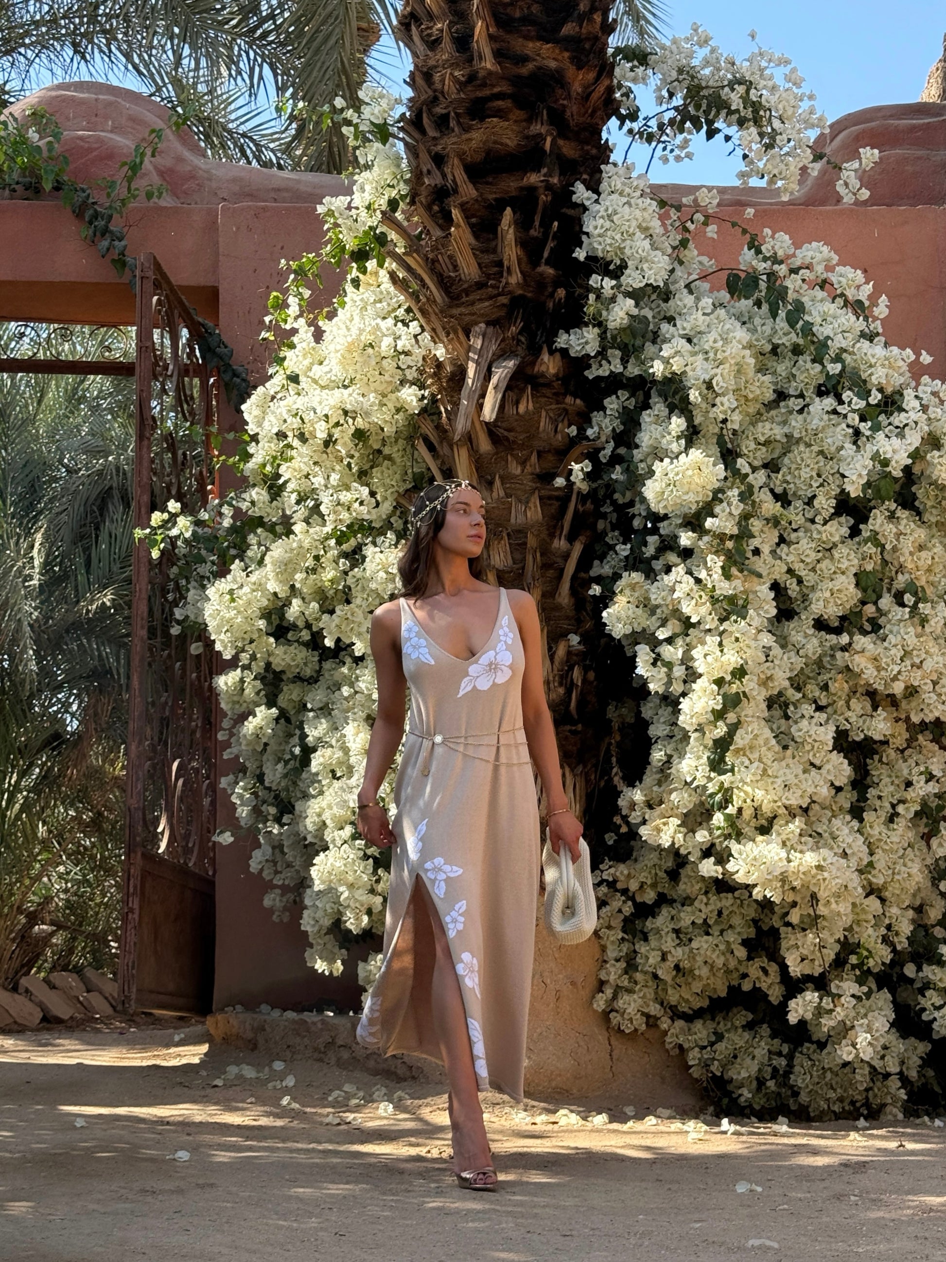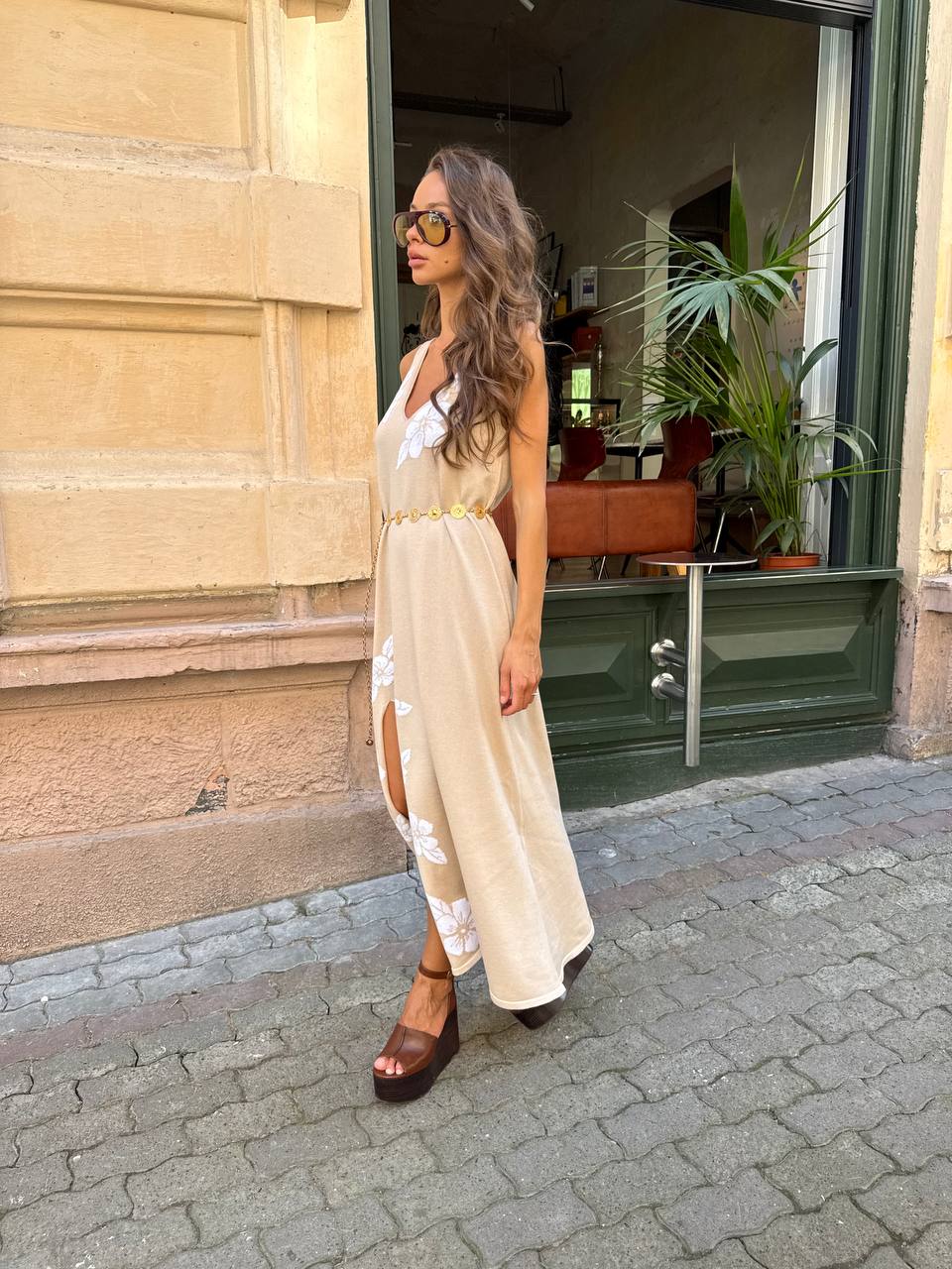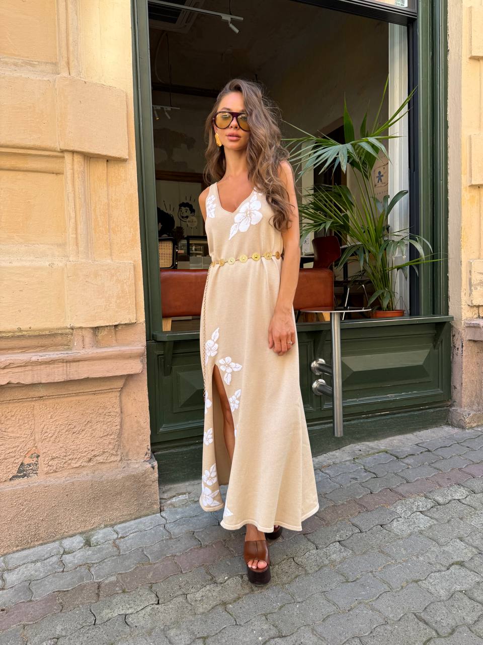 Сукня вʼязана з бавовни з обʼємними квітами, бежевий