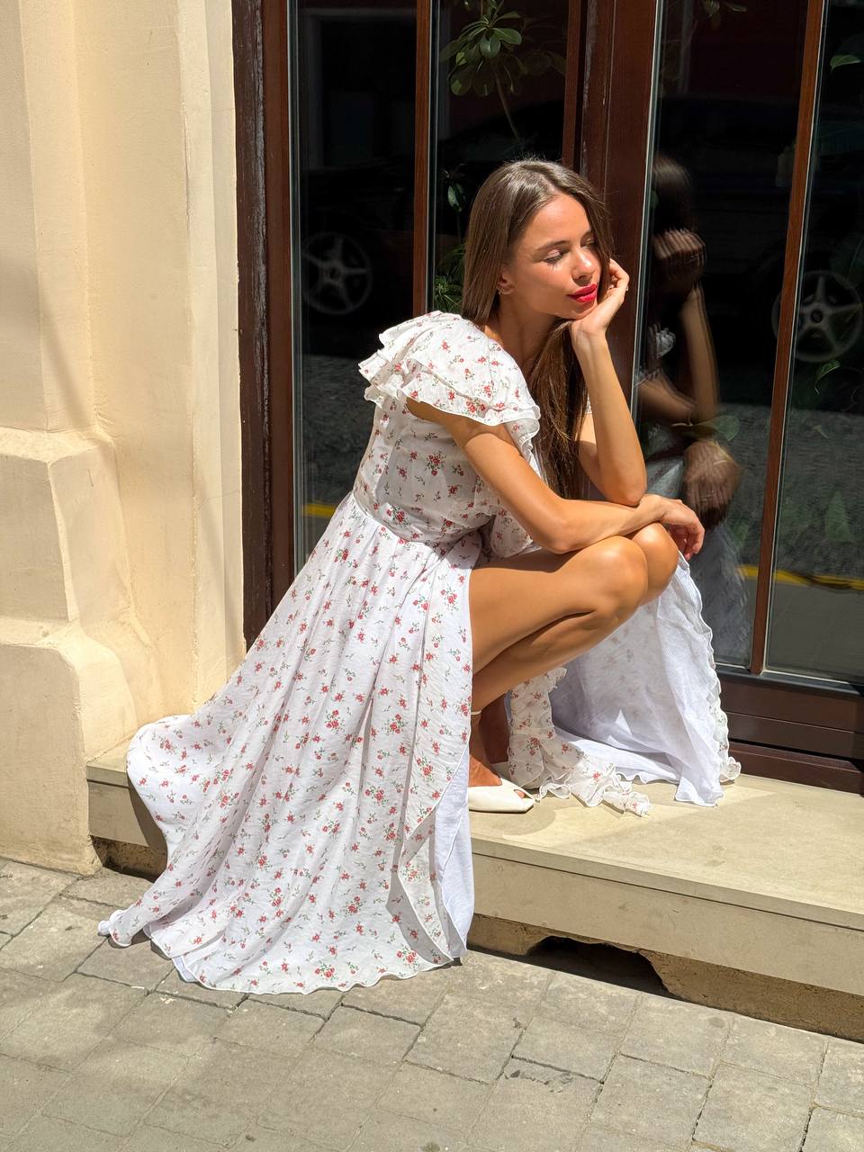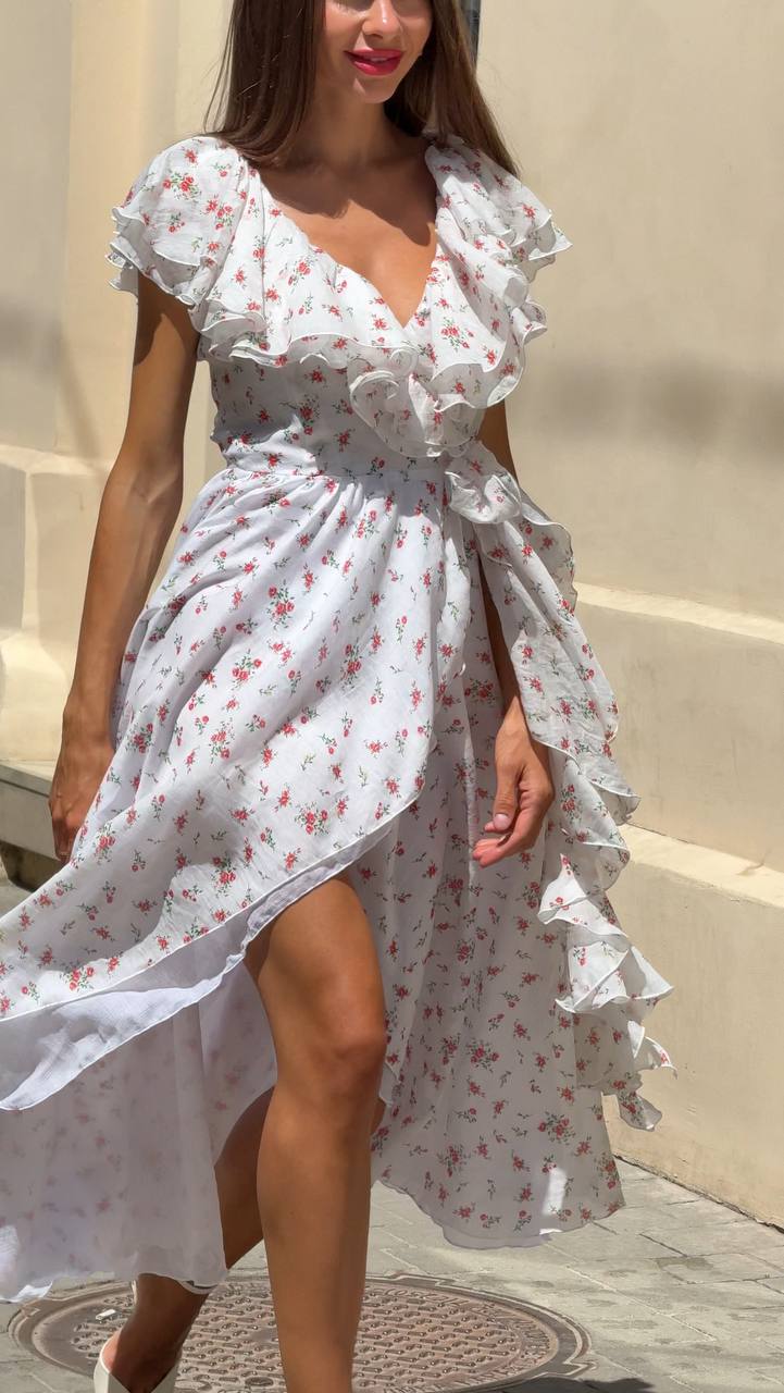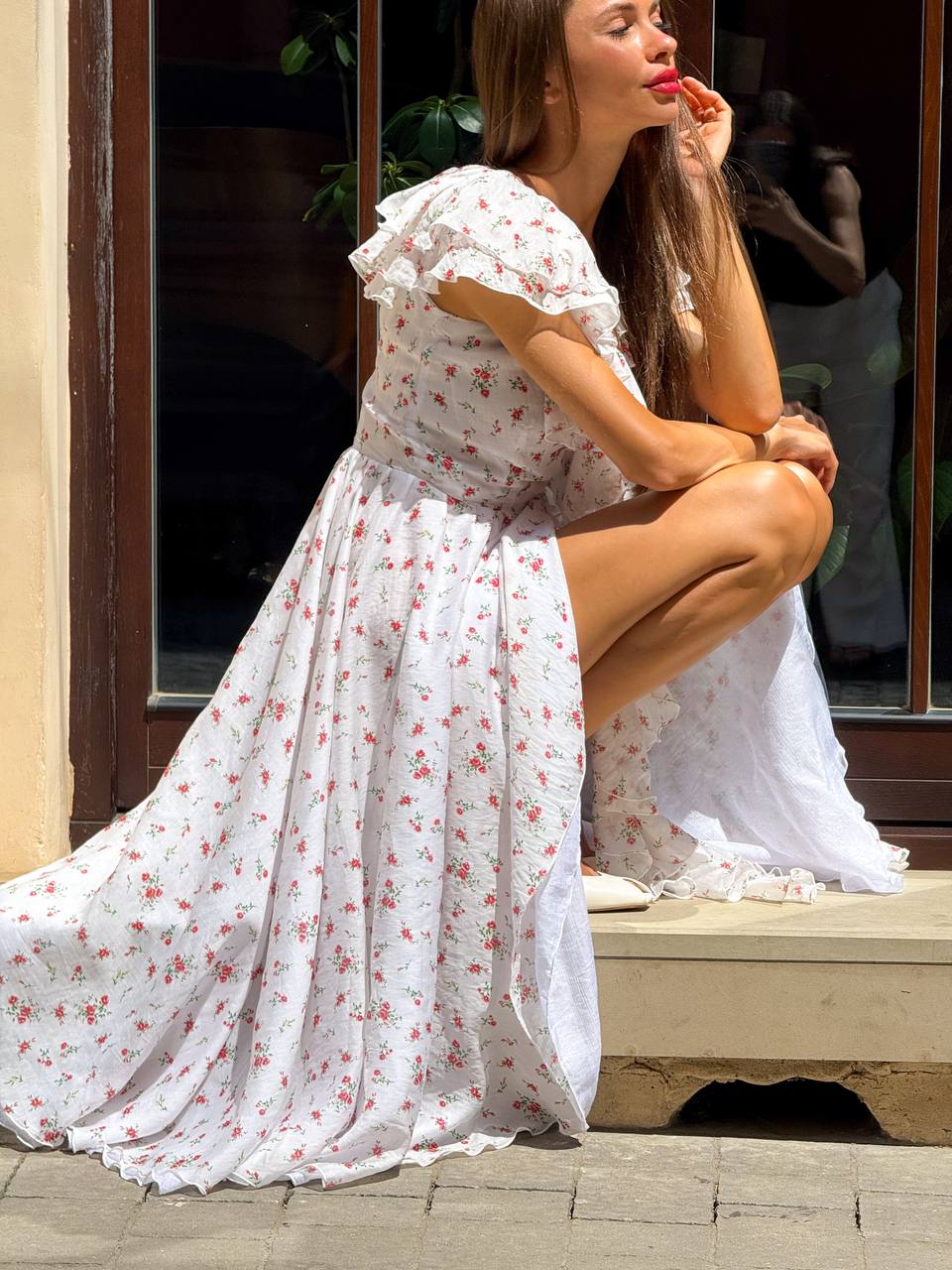 Сукня з воланами в квітковий принт дрібні червоні трояндочки
