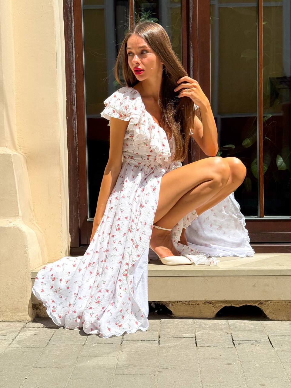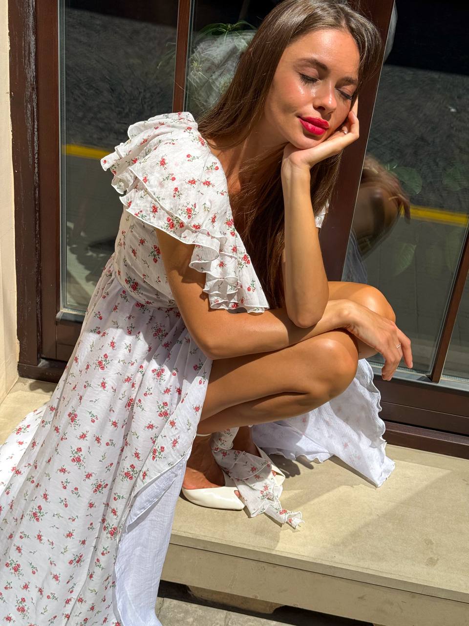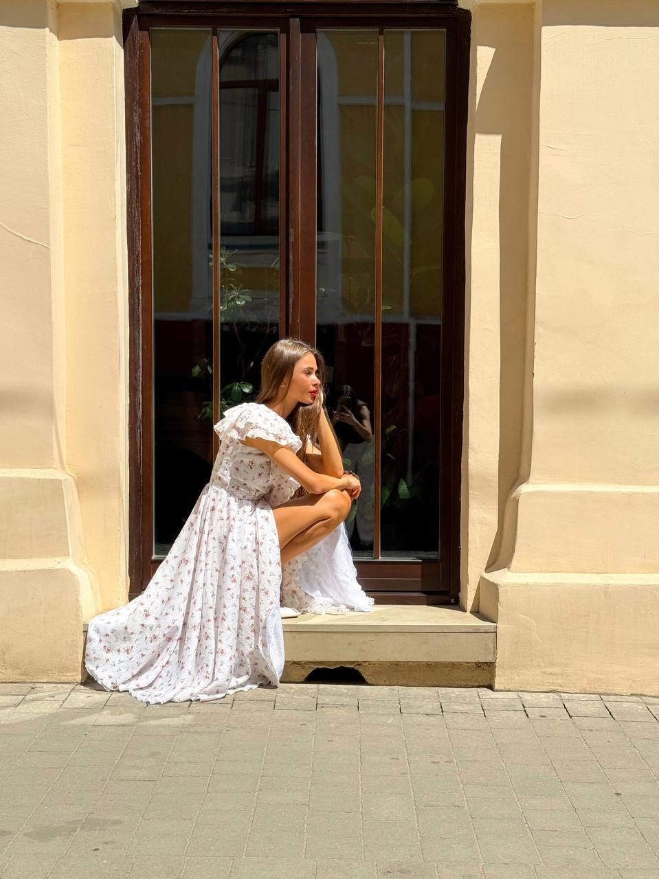 Сукня з воланами в квітковий принт дрібні червоні трояндочки
