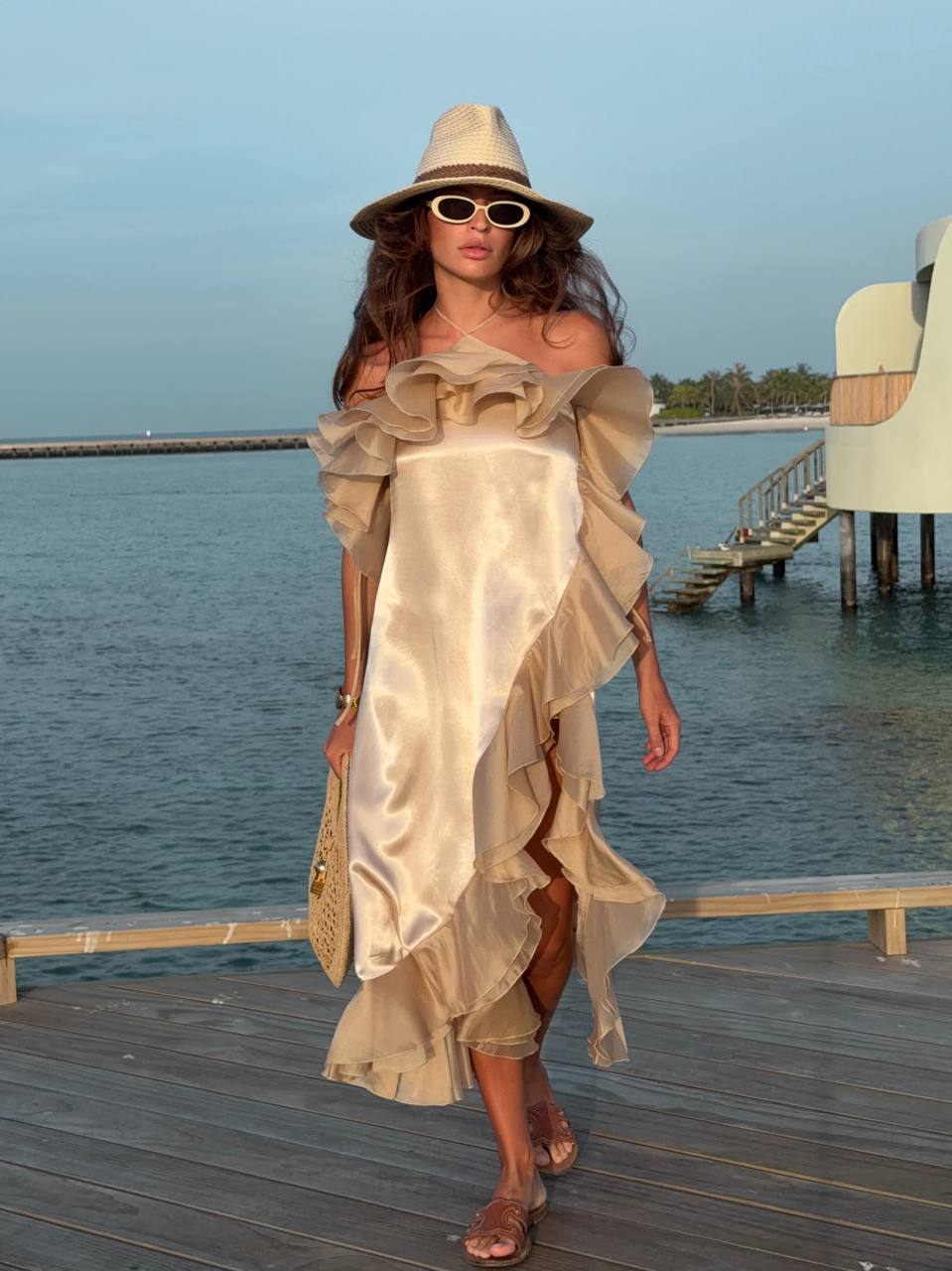 Легка, повітряна сукня, що створює відчуття руху з кожним кроком. М’які хвилясті рюші додають образу романтичності та елегантності, а вільний силует красиво підкреслює фігуру, не обмежуючи комфорт. Ідеальний вибір для літніх прогулянок, відпочинку біля моря чи особливих моментів, коли хочеться виглядати effortlessly красиво.