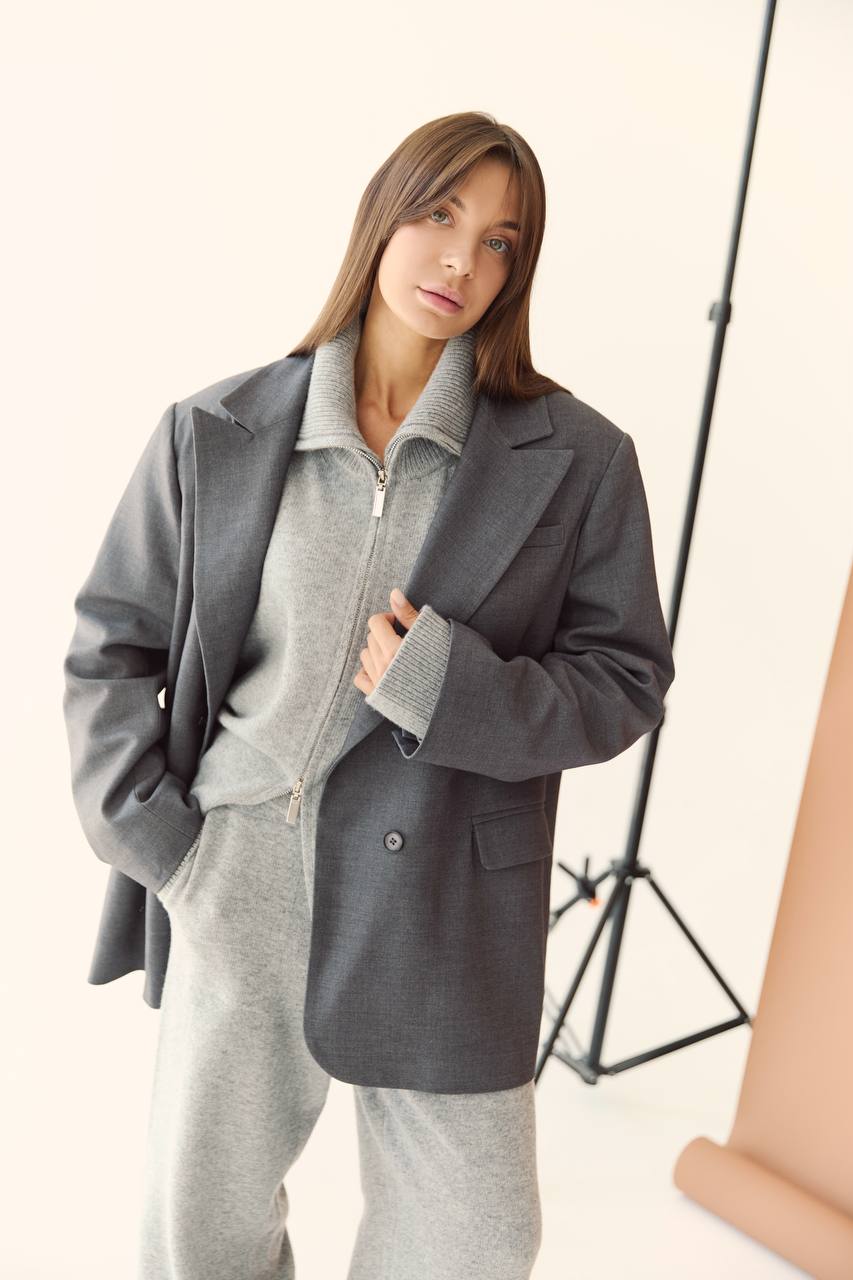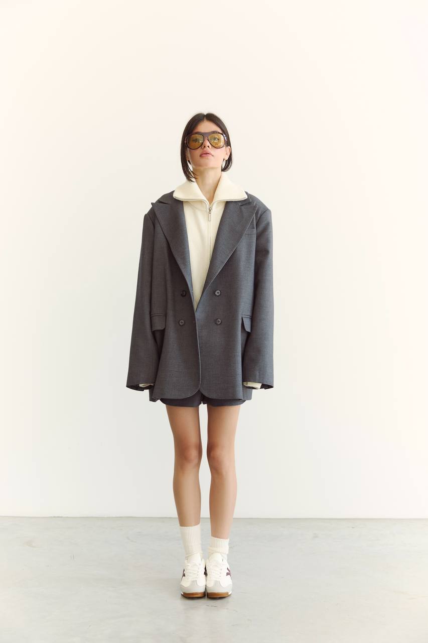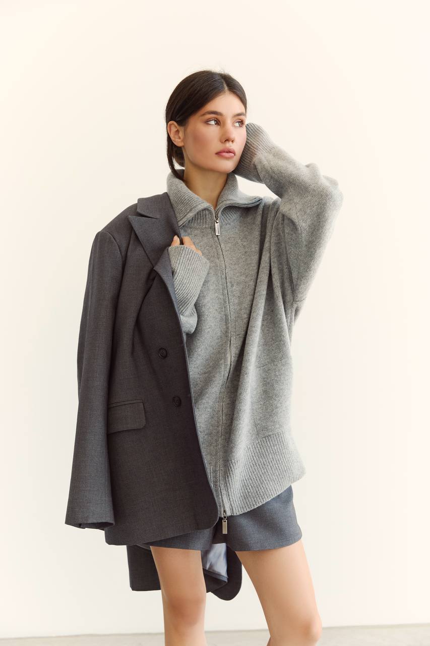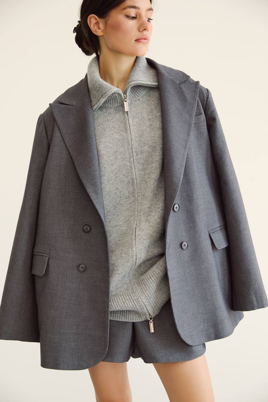 Сірий відтінок у тонкій фактурі — шорти, що поєднують мінімалізм та комфорт. Чудово гармонують із жакетом із вовни, створюючи цілісний, стримано-елегантний образ.
