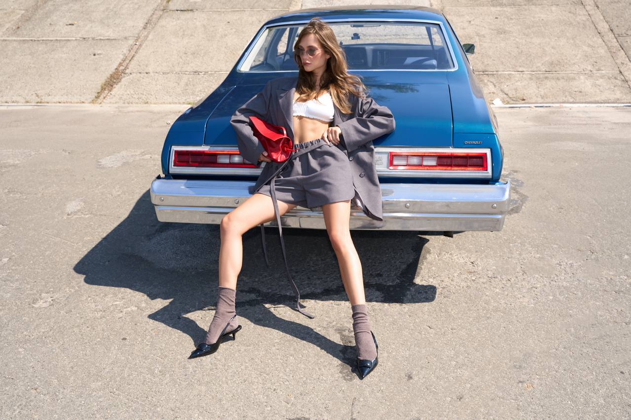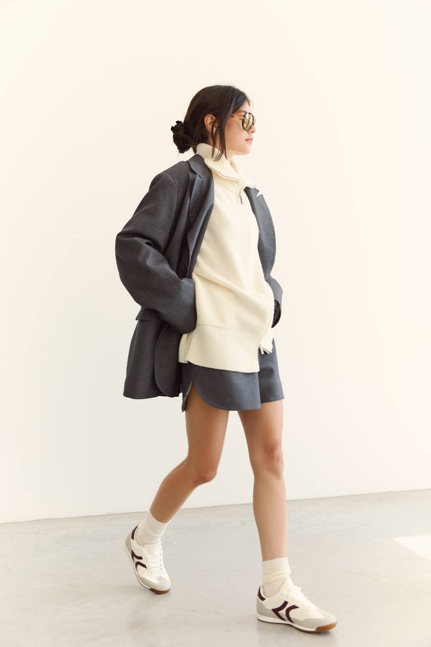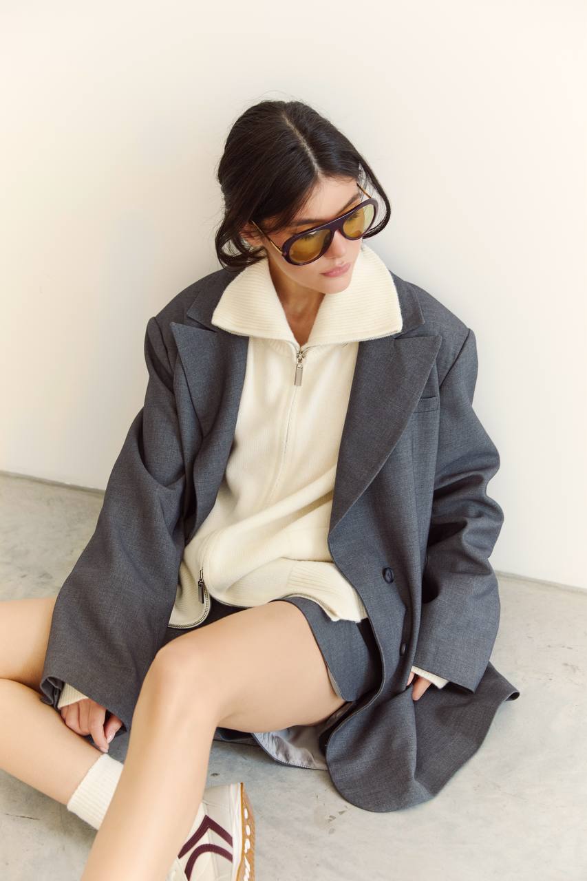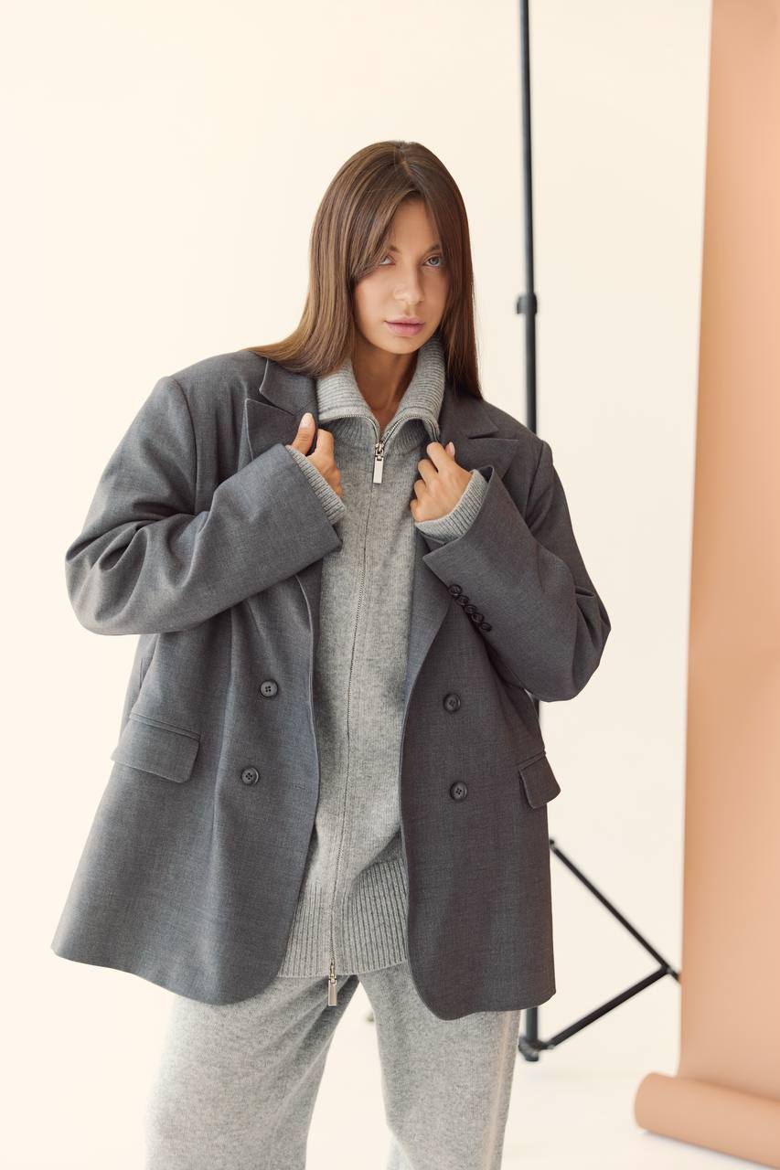 Сірий відтінок у тонкій фактурі — шорти, що поєднують мінімалізм та комфорт. Чудово гармонують із жакетом із вовни, створюючи цілісний, стримано-елегантний образ.