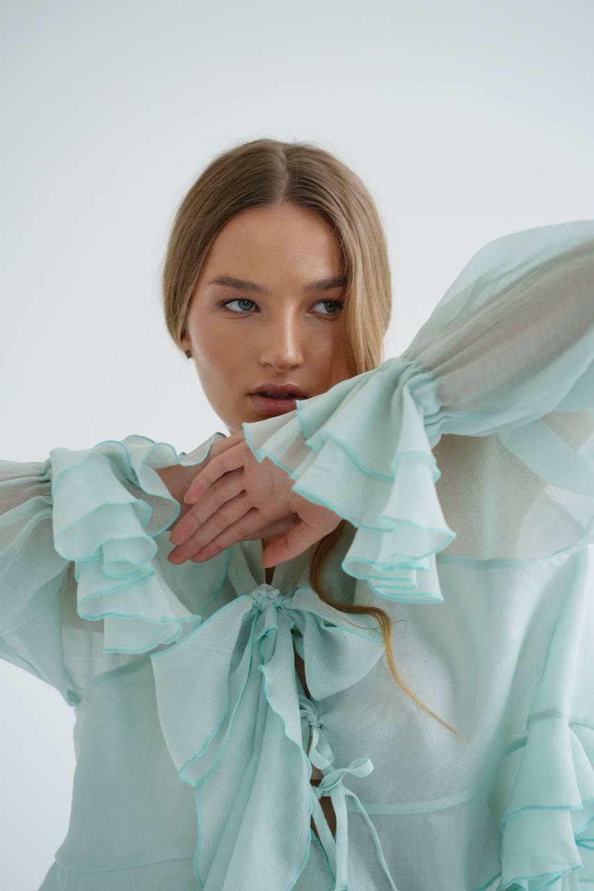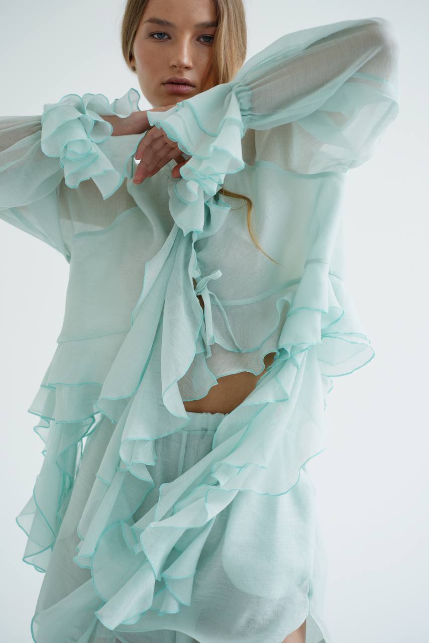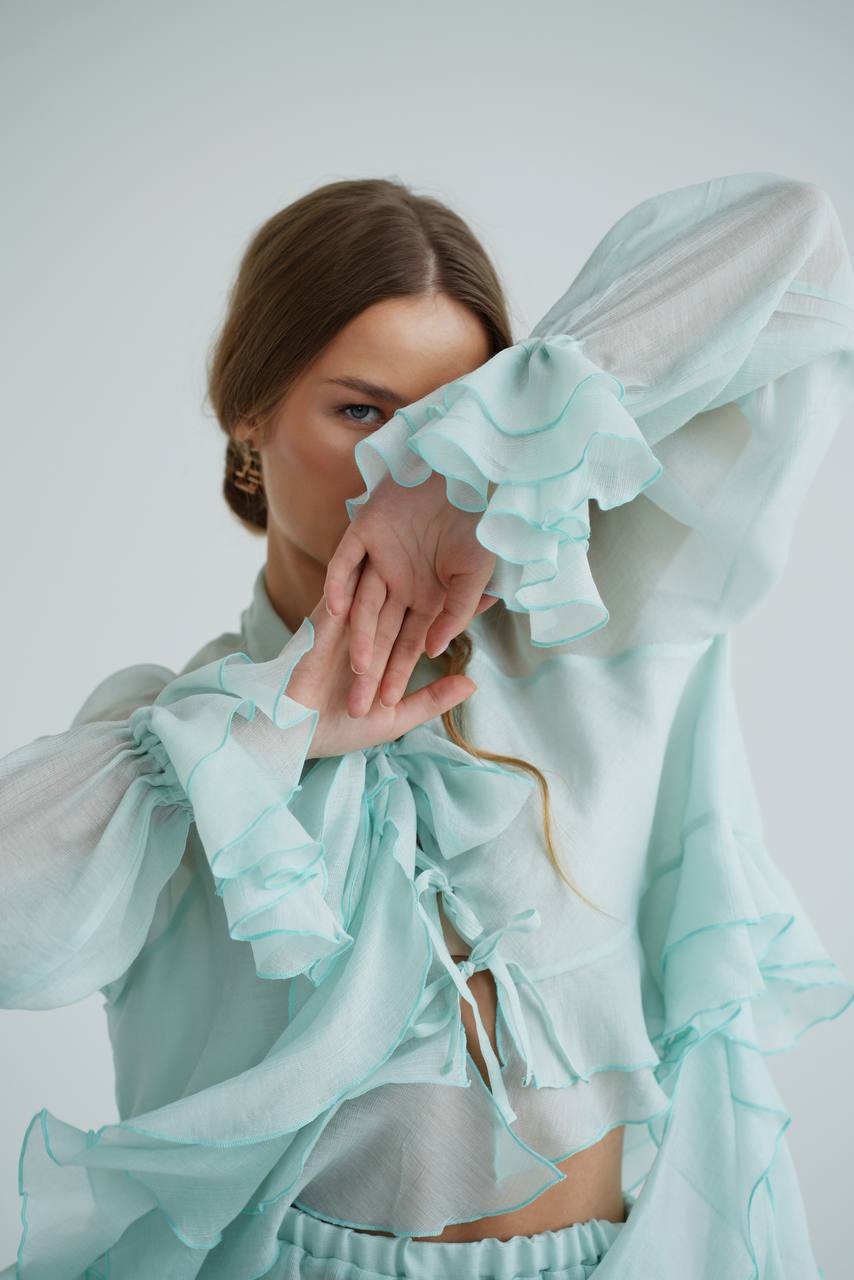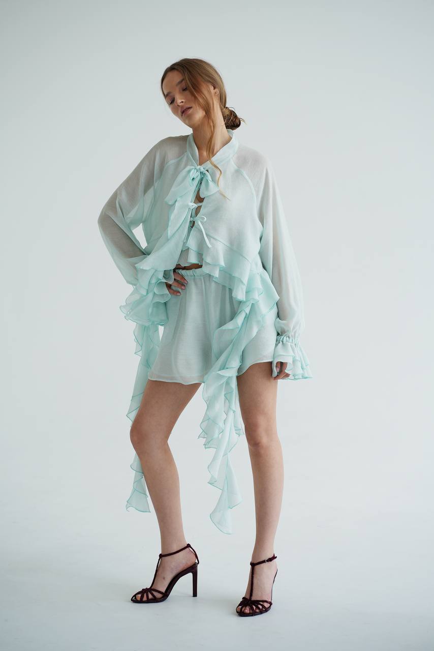 Легкі шорти з шифону — втілення витонченості та ніжності. Повітряна тканина м’яко огортає силует, створюючи відчуття легкості та свободи. Ідеально поєднуються з нашою блузою, утворюючи елегантний, ефірний комплект для стильних весняних та літніх образів.
