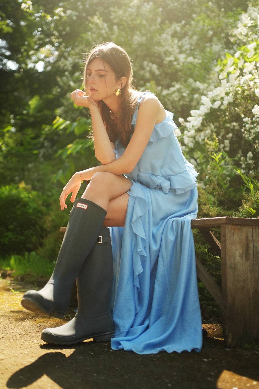 Легка, елегантна і романтична сукня з шифону в ніжному блакитному кольорі — ідеальний вибір для створення жіночного та витонченого образу. М'яка тканина красиво драпірується, підкреслюючи фігуру, а декоративні рюші на подолі надають сукні особливого шарму та грайливості.