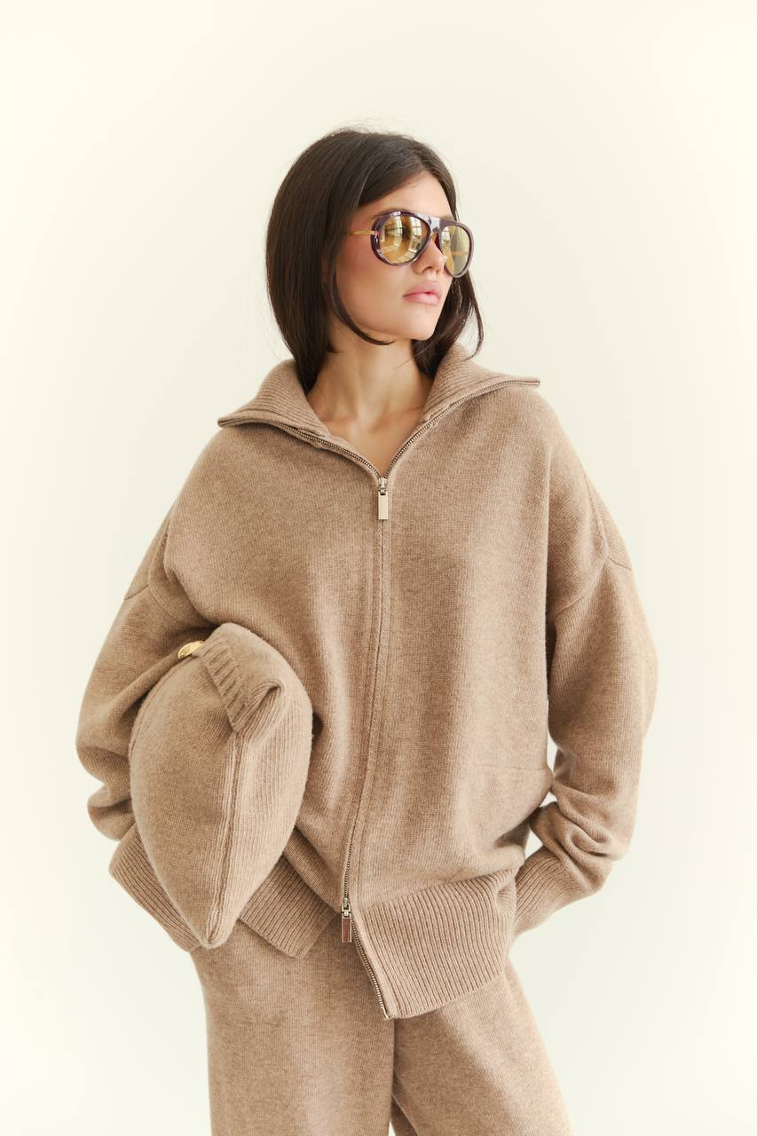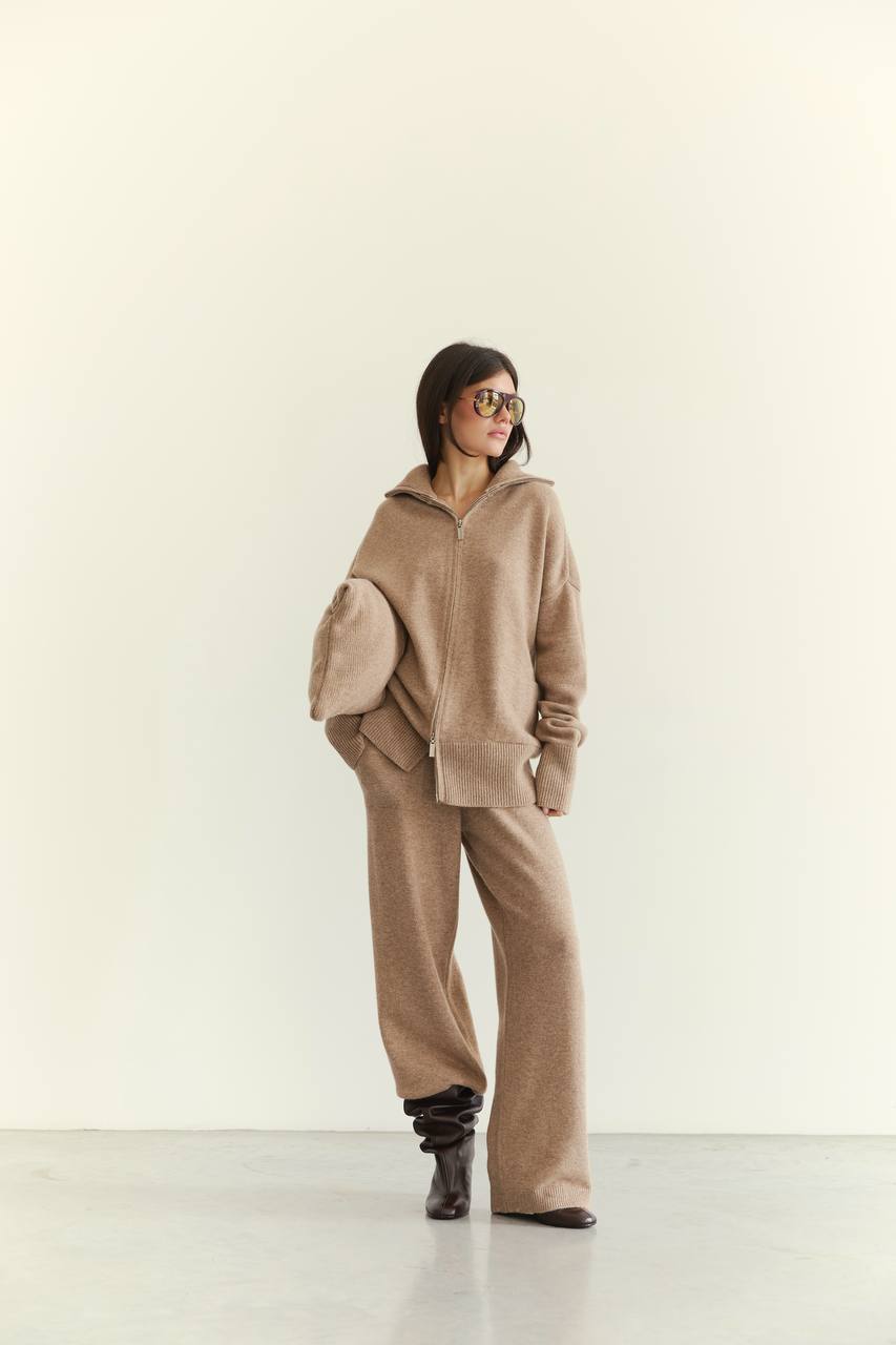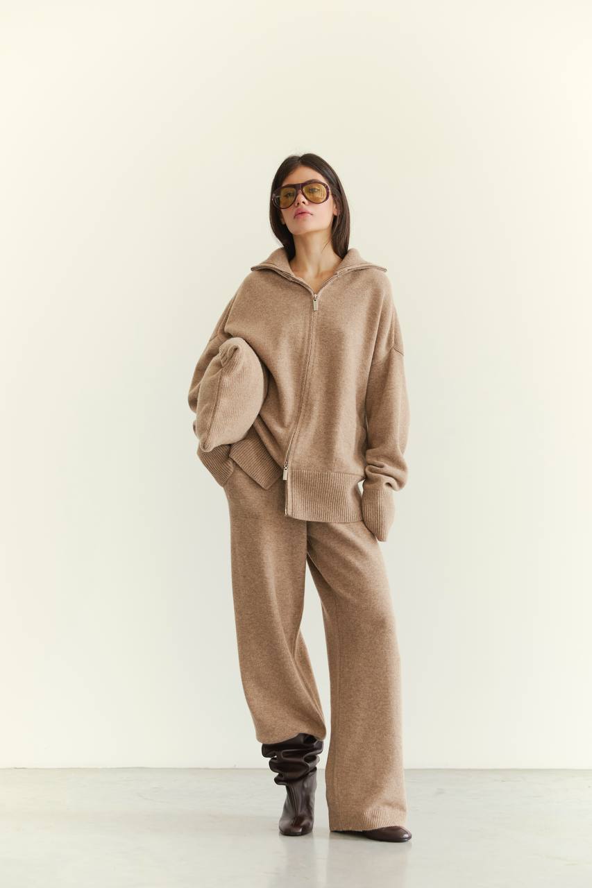 Комплект з вовни ягня кардиган на блискавці і брюки, бежевий (термін виготовлення 10-12 робочих днів)