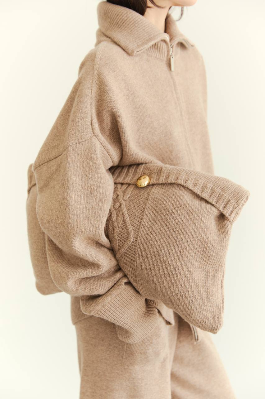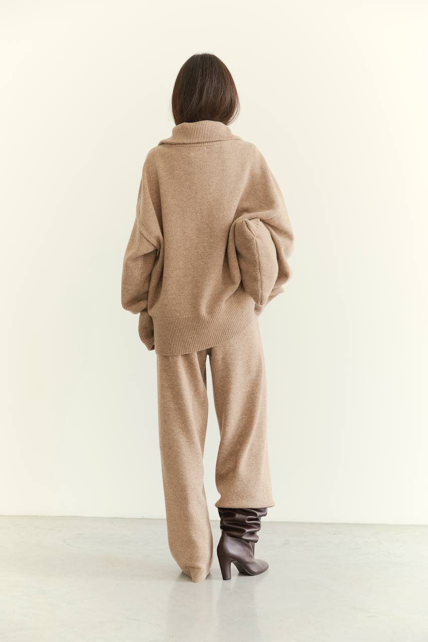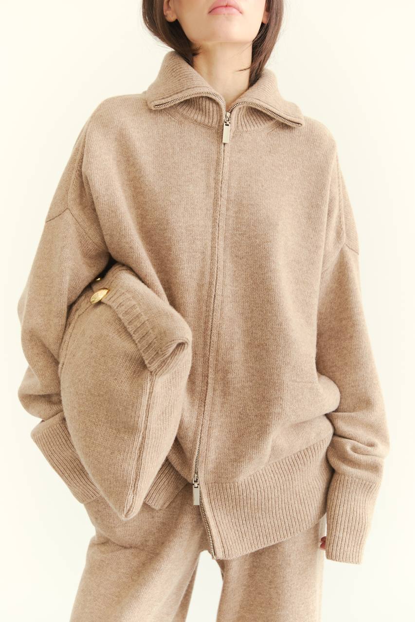 Комплект з вовни ягня кардиган на блискавці і брюки, бежевий (термін виготовлення 10-12 робочих днів)