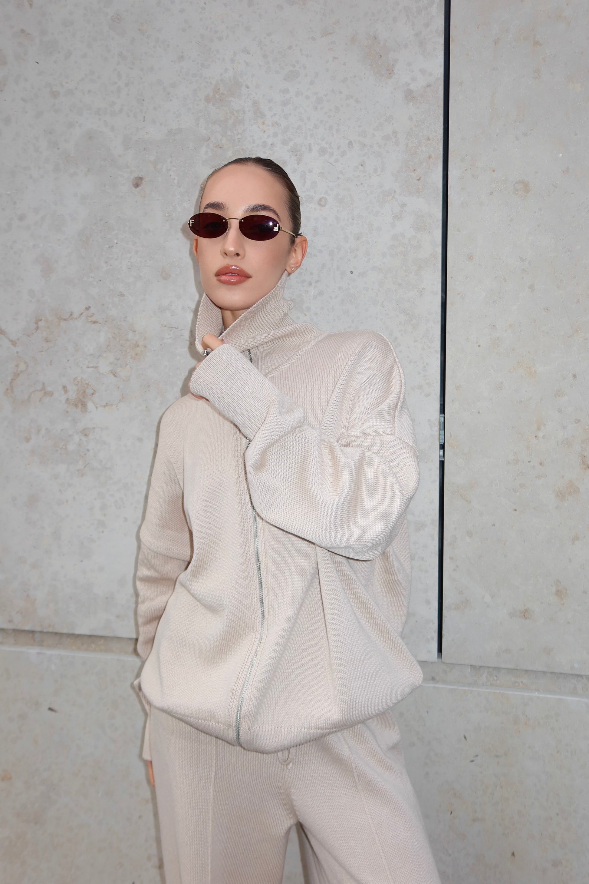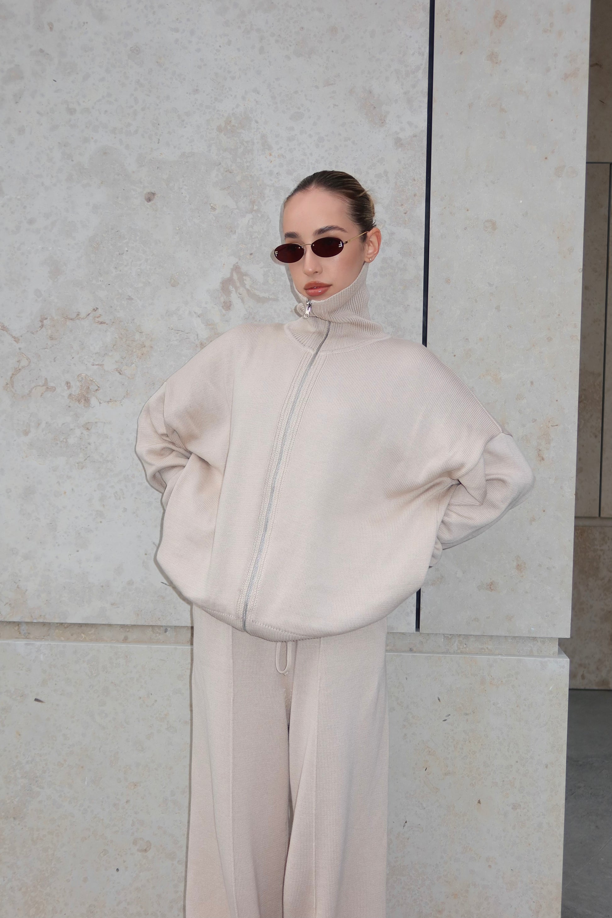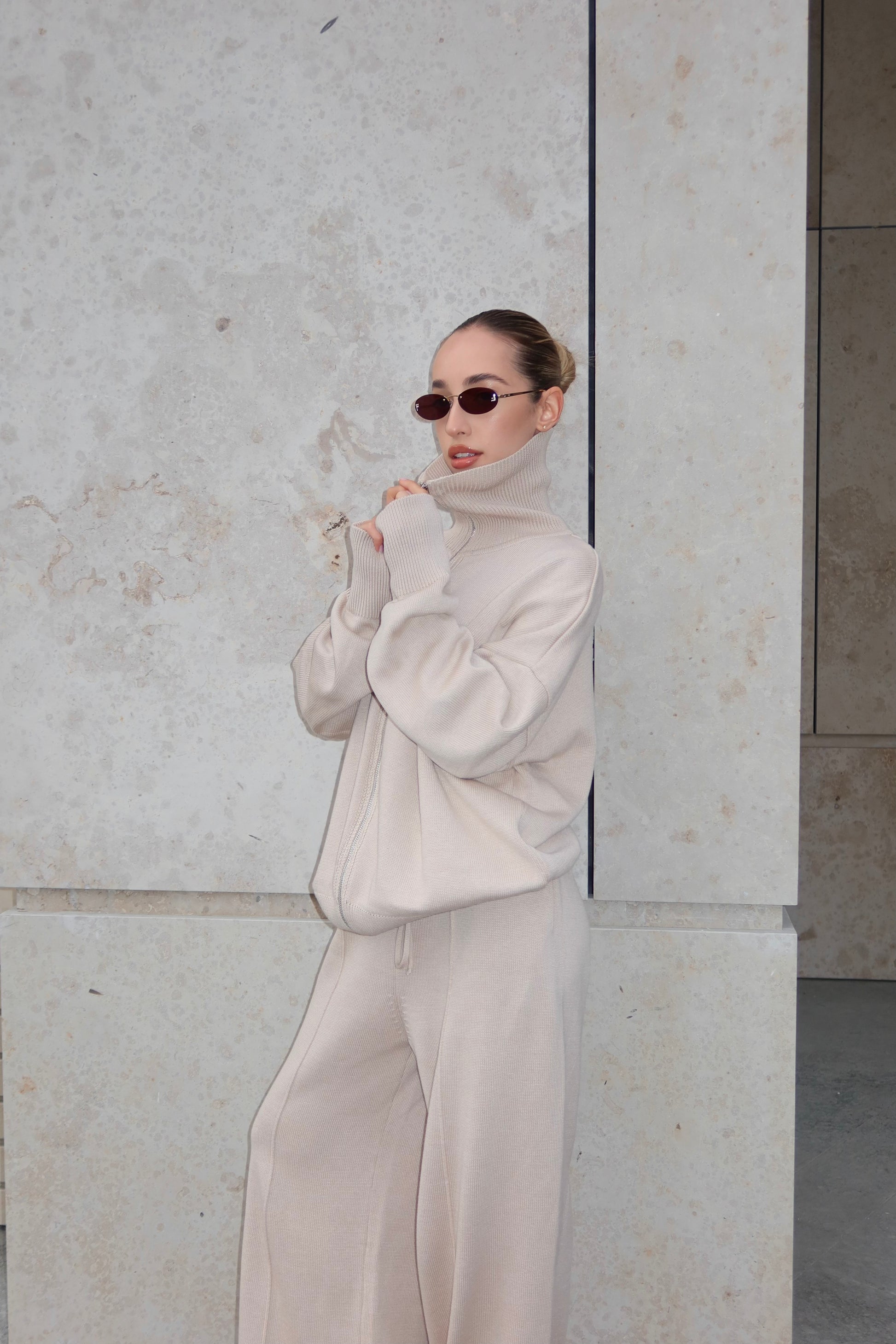 Комплект з бавовни кардиган на блискавці і брюки, світло-бежевий